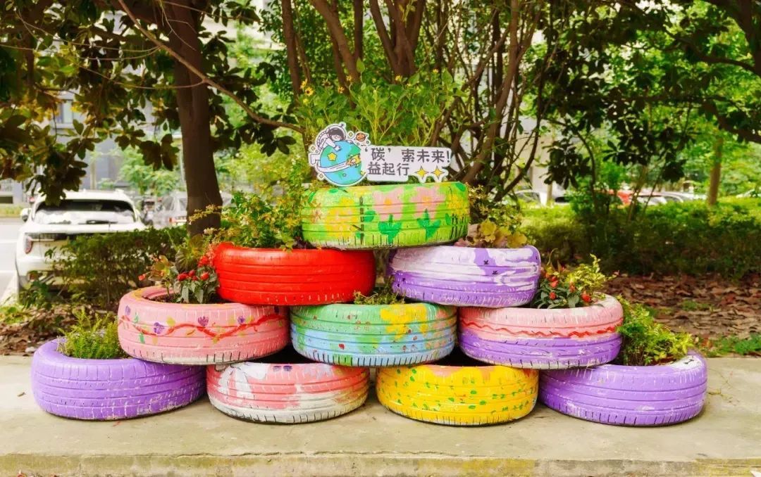 活动当天,孩子们化身为小小艺术家,用他们那天马行空的想象力和手中五彩斑斓的画笔,在废旧轮胎上进行创意绘制,将这些原本无用的物品改造成一个个彩色“花盆”,赋予废旧轮胎新生。
