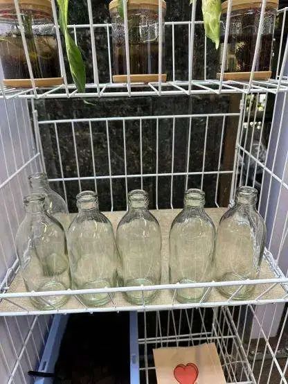 在垃圾箱房内,新增的“君绿小集”环保架成为连接居民与可持续生活方式的桥梁。居民将家中的可回收物,如玻璃瓶、塑料瓶、咖啡渣等废弃物,分类投放到“君绿小集”的环保架上。这些废弃物随后经过初步的分类、清洗和处理,被转化为可再利用的资源或产品。例如:玻璃瓶经过清洗消毒后,可用于插花、存储食品等;咖啡渣则可以作为天然肥料,用于小区绿化带的养护。