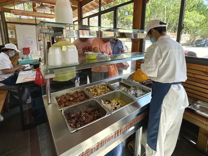 对于行动不便的老年人来说,社区食堂的存在减少了他们“买汰烧”的烦恼,还省去了饭后的清洁工作。“我们社区食堂开了快有一年了,我们这些邻居哪天想偷懒不烧饭了都直接拿家里碗来‘打饭’的。”“张阿姨是社区食堂的老顾客了,今天正打算买上两荤两素中饭晚饭一起‘解决’。”“每天菜色都不一样很丰富,干净卫生还离家近,我们老年人吃的也不多,我和我老伴的中饭晚饭也就二三十左右,性价比确实很高!”
