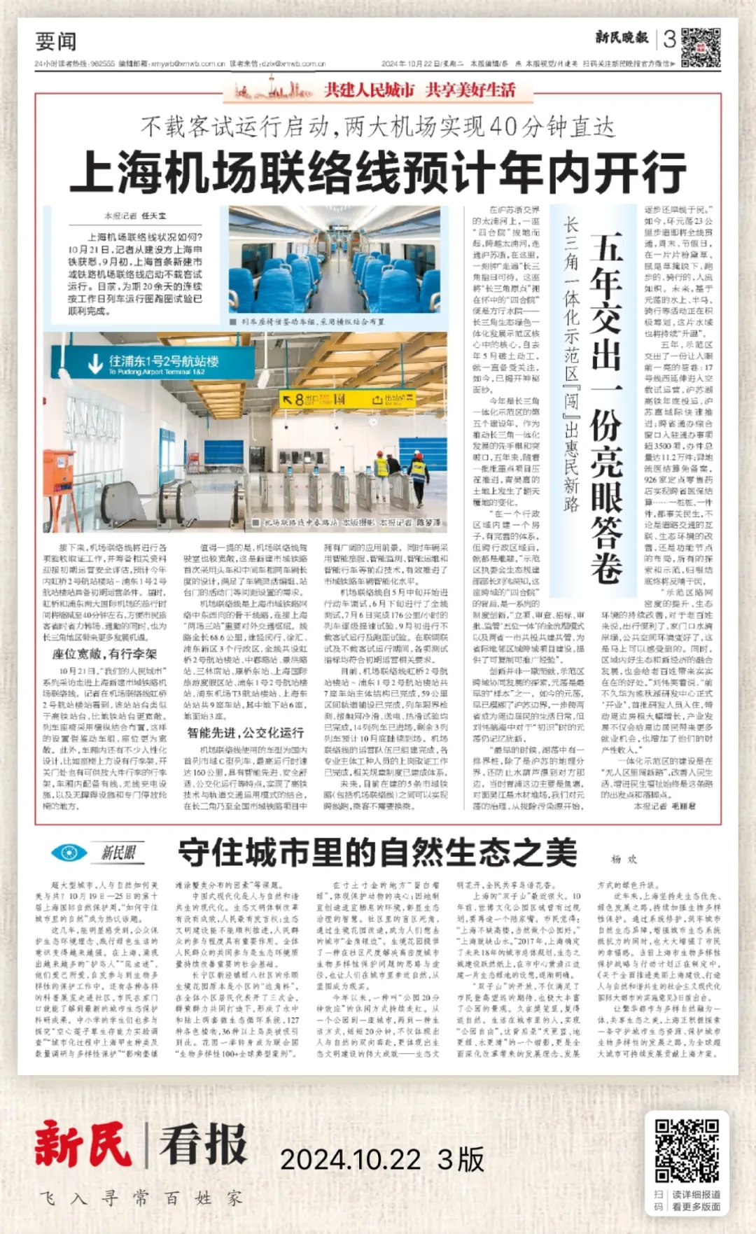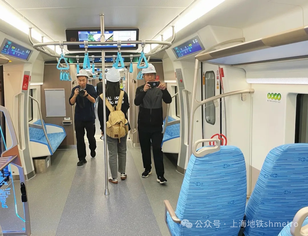 媒体记者们登上列车进行试乘,沉浸式体验调试中的机场联络线列车的舒适与便捷。