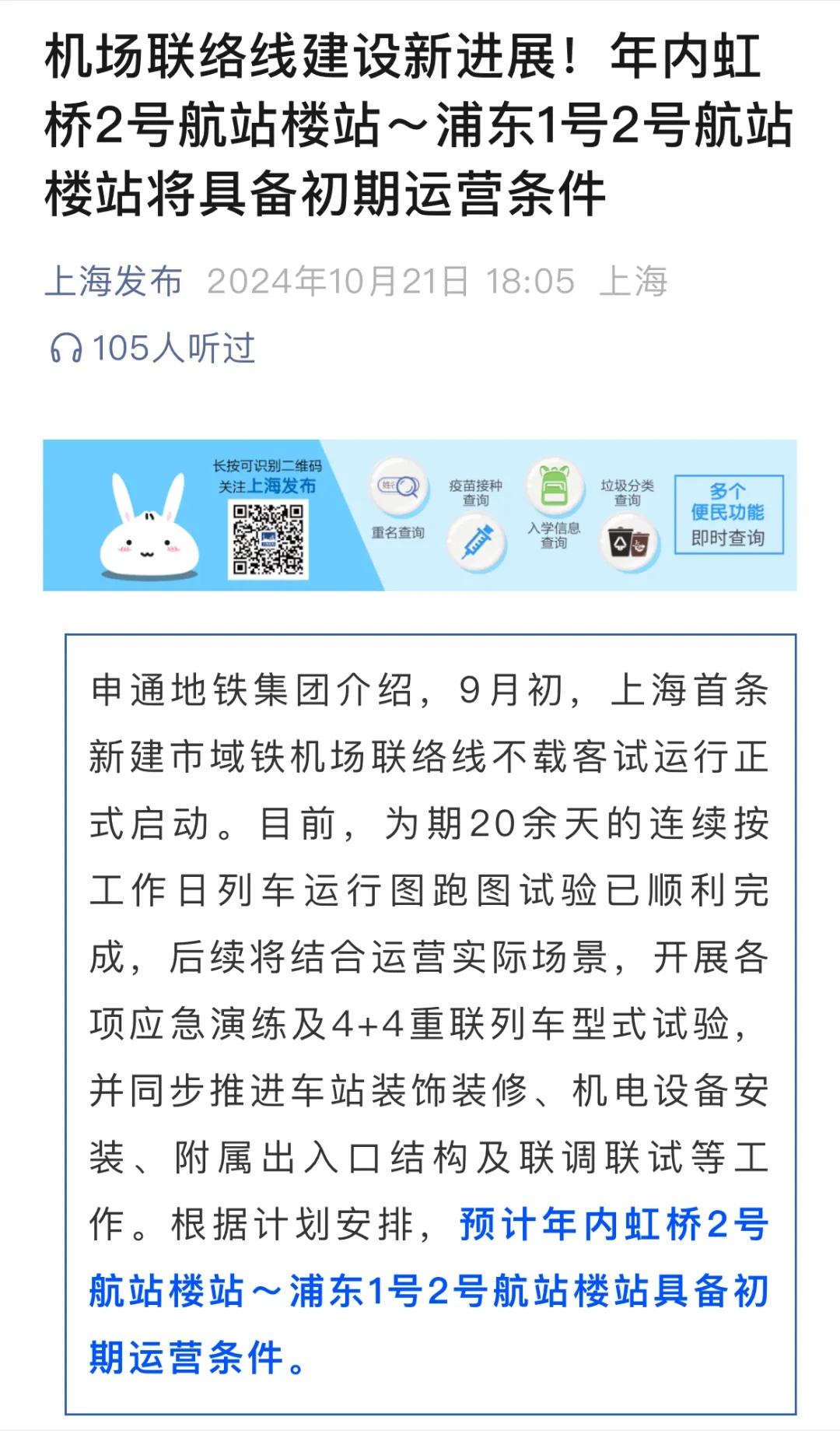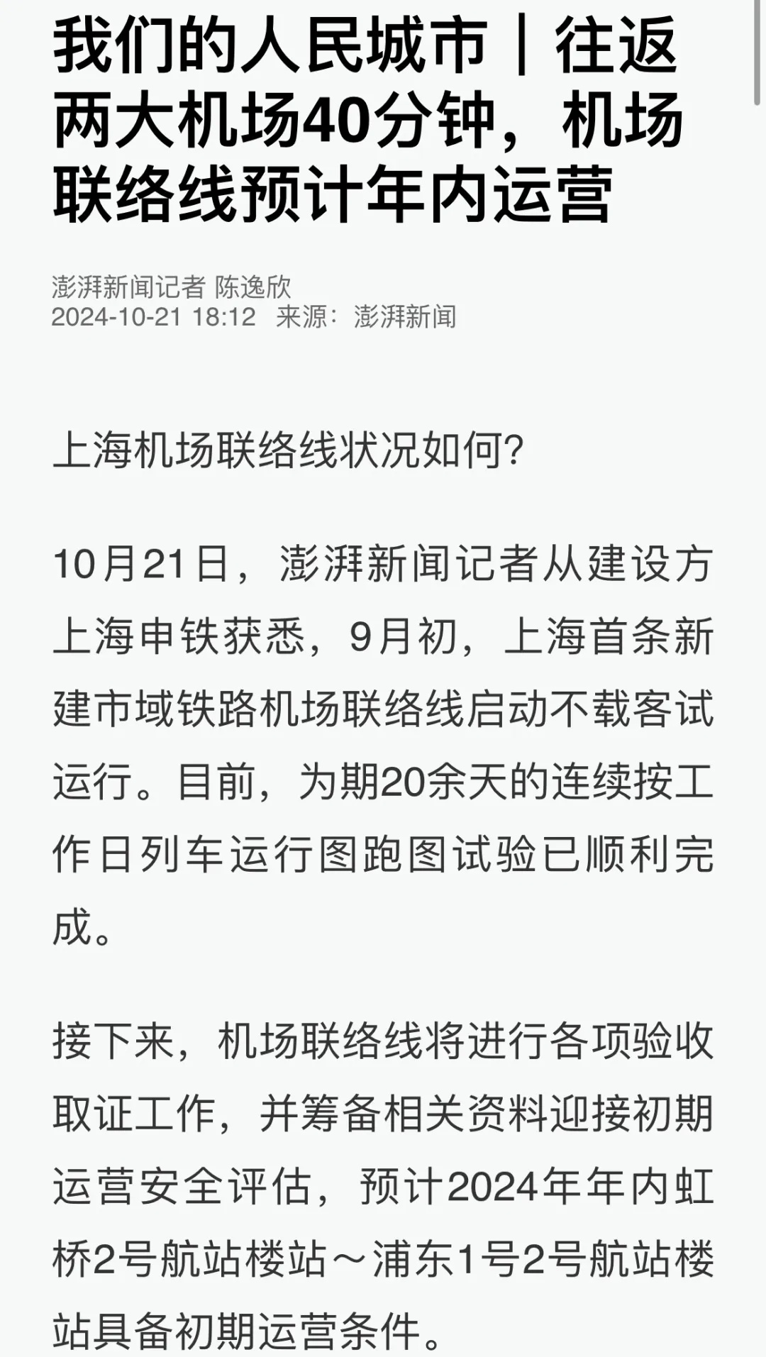活动过程中,市交通委综合规划处四级调研员黄欣,上海申铁投资公司党委副书记、总经理林强,上海市域铁路运营公司党委书记、执行董事徐敢锋分别就上海交通建设高质量发展、市域铁机场联络线建设推进情况及运营准备情况进行了详细介绍。记者们饶有兴致地参观了机场联络线虹桥2号航站楼站和中春路站,并乘坐列车。