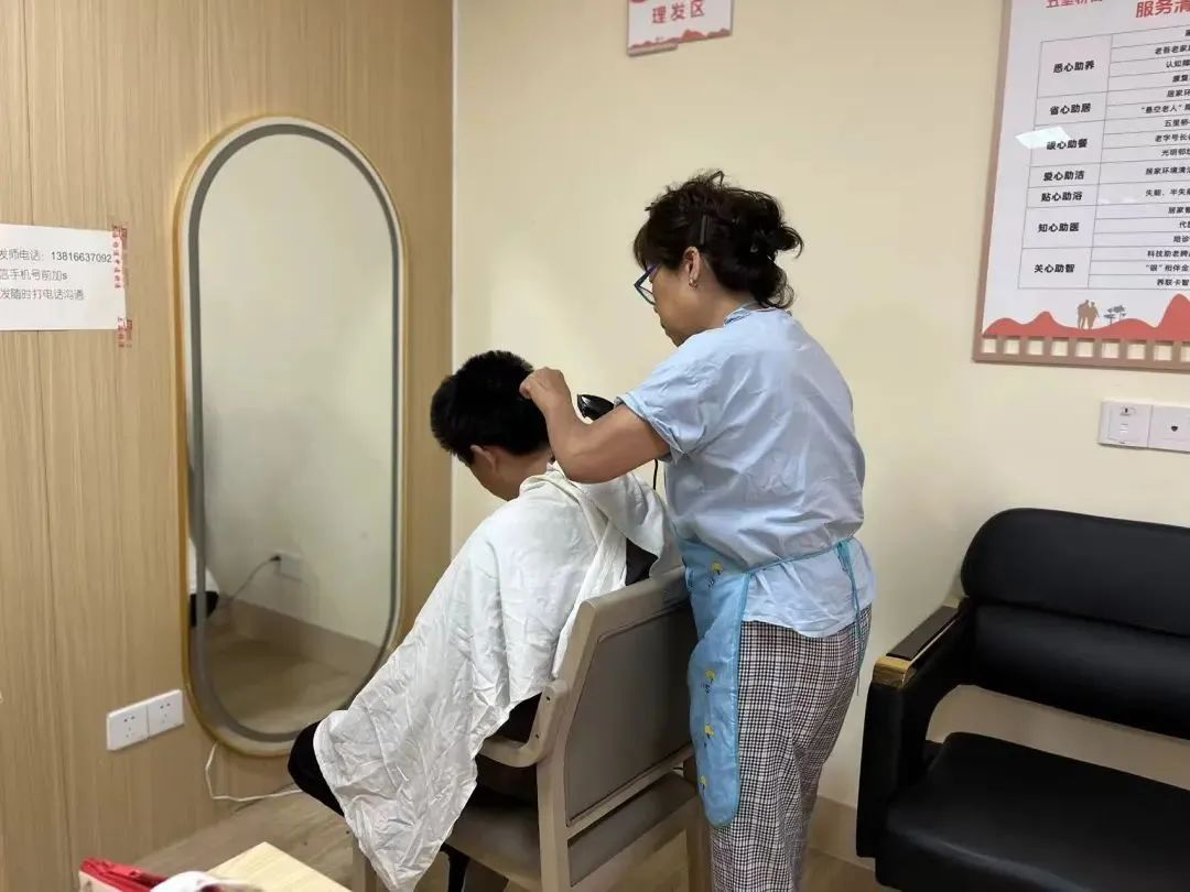 一块磨刀石、一条长板凳,磨刀师傅利落地挽起袖子,一把又旧又钝的剪刀不出几分钟就变得光亮如新。“能在社区里找到磨刀的地方真是太好了。”周阿姨对此称赞不已,“现在市面上这些服务越来越少,还好有这里,让我们不用发愁。” 自上半年焕新升级后,黄浦区五里桥街道第二日间照护中心紧密围绕居民高频需求,固定频次提供磨刀、理发、修伞等服务,同时也入驻裁缝、修鞋、配钥匙等实用项目。这些随着城市发展逐渐难觅踪迹的摊位,如今重新回归居民生活圈,不仅极大地方便了社区居民,也让便民服务更接地气、更有温度。老年朋友刷养联卡,还可享受专属的敬老优惠价格。