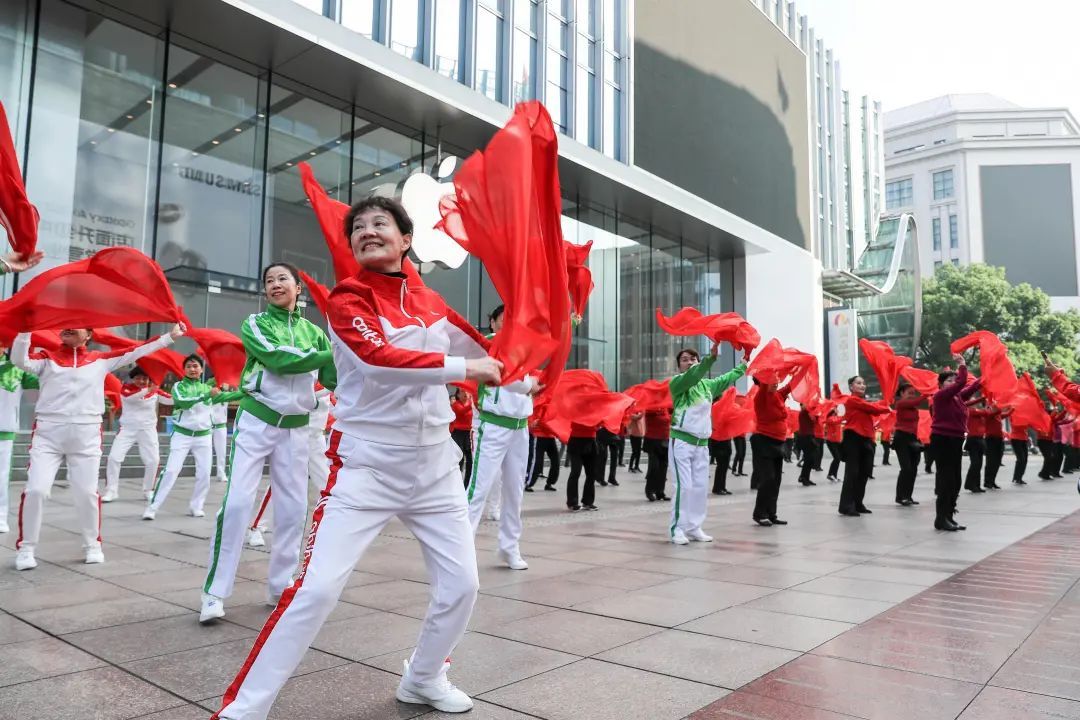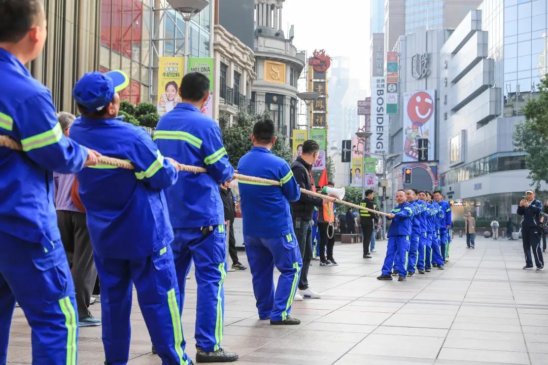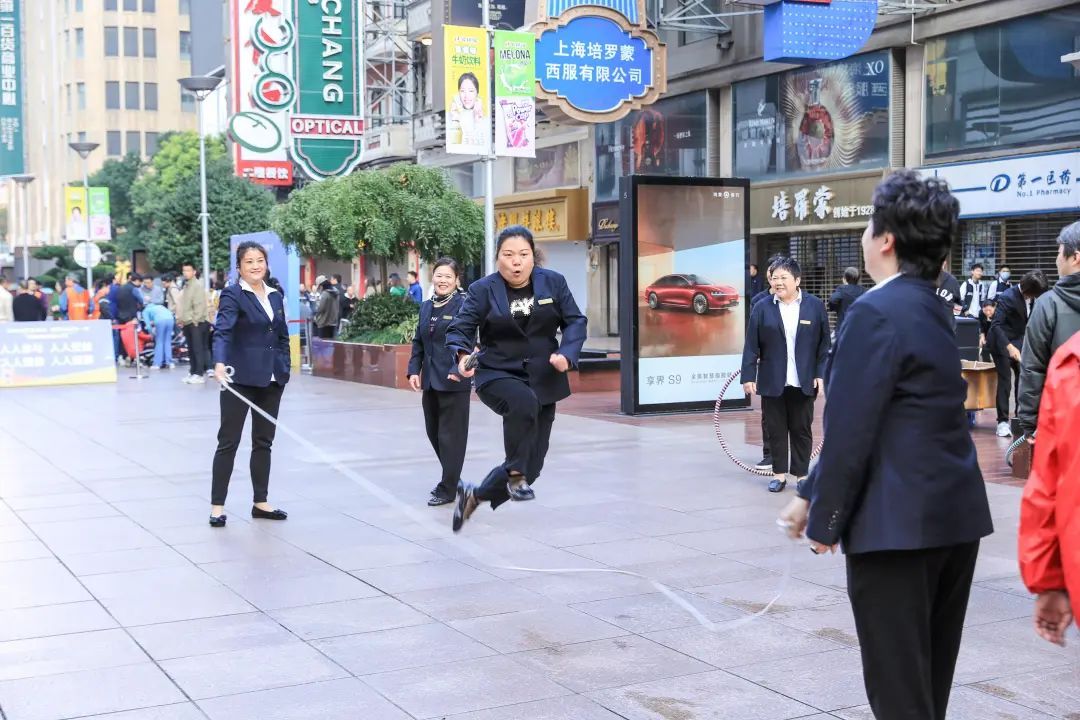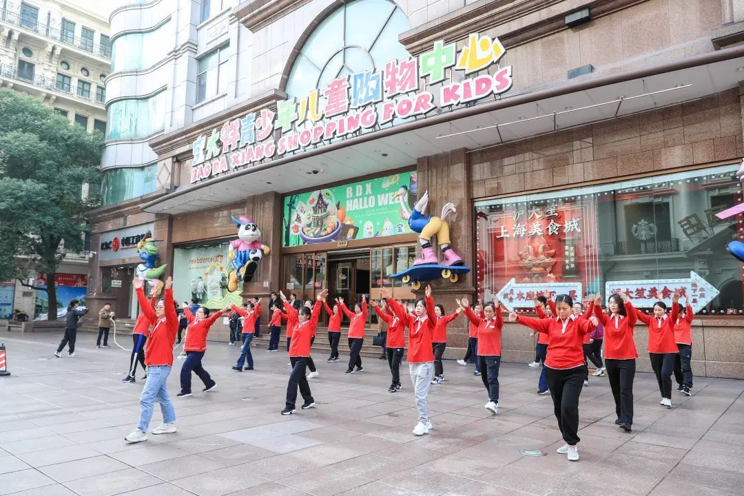 现如今的马路运动会,沿街商店的员工依旧是主角,区内各企事业单位职工闻讯前来参与,步行街上的市民朋友们也被击鼓声、助威声、喝彩声吸引了过来,共同描绘了一幅幅“全民健身 幸福黄浦”的活力画卷。