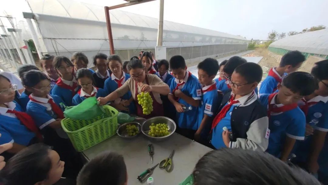 当天,学生们还跟随沈万英前往葡萄种植园采摘葡萄。采摘过程中,除了学习葡萄采摘技巧,好学的孩子们还向沈万英请教起了葡萄种植的相关知识。听完沈万英的讲解,不少同学感慨,“种葡萄可不比搞学习容易,定期浇水、施肥、修剪枝叶,真是样样不可少。”