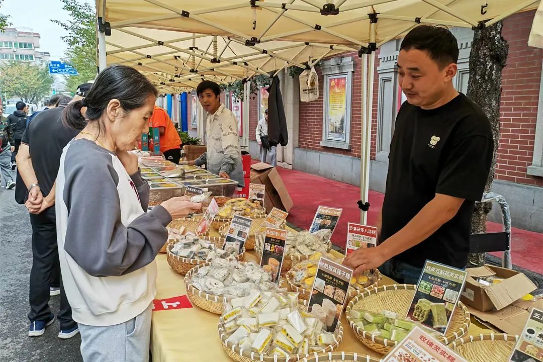 在安泽路上举行的“安心坊”名特优产品进社区活动,吸引了不少居民驻足“尝鲜”。