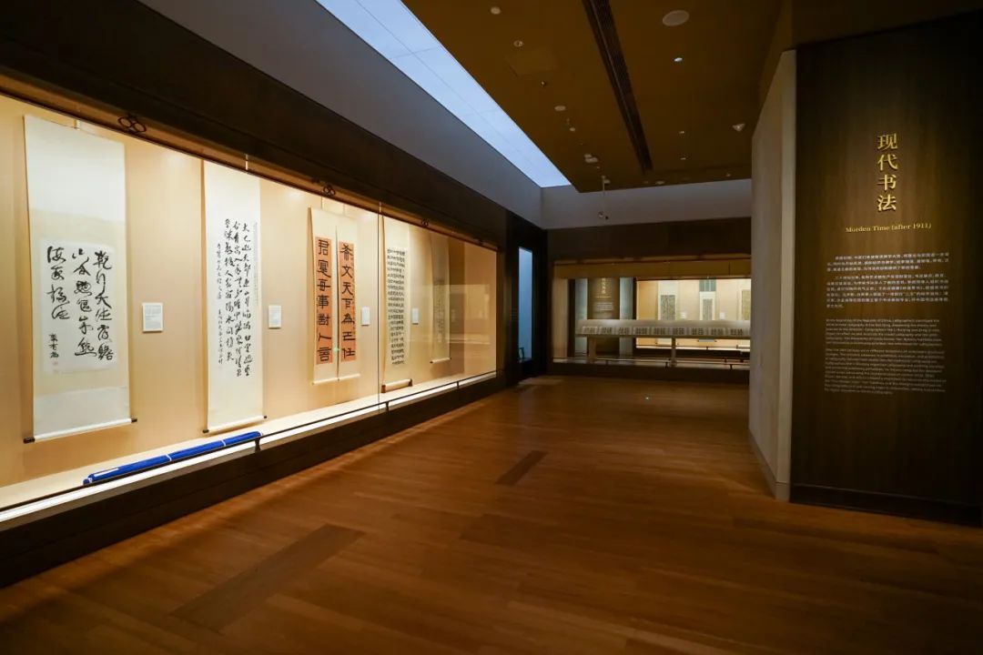 书法馆在呈现古代经典的同时,还特别新增现代书法版块,以展示近现代书法家的传承与创新,首轮现代书法部分主要展出近十幅作品,均为首次露面,包括罗振玉、梁启超、弘一法师、黄宾虹、沈尹默等人的作品。这些作品将阐释20世纪以来书法艺术的发展历程,使得上博书法通史更趋完整。