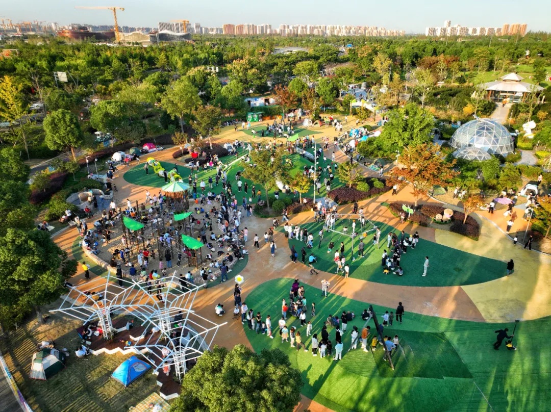 “上海之鱼”的火爆程度在新城的公园中并不是个例,奉贤共有203座公园全时段开放,共享率达98%,居全市前列。近年来,奉贤新城一直致力于建设生态宜居城市,依托生态体系布局和功能板块特征,将新城内部的蓝绿空间与周边河湖、林地、耕地等融合为完整的生态网络和开敞空间体系,塑造“十字水街、田字绿廊”格局,用绿色的隐形隔断打造特别生态空间。一步一景、处处是景的城市景观也让市民们更愿意出来走走,享受城市中的大自然。