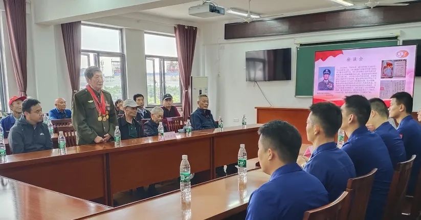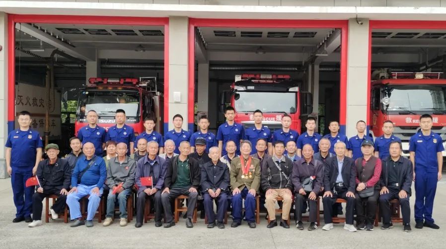 金汇消防中队现役官兵和西渡功臣老兵们共同开展“一湾功臣”座谈会。