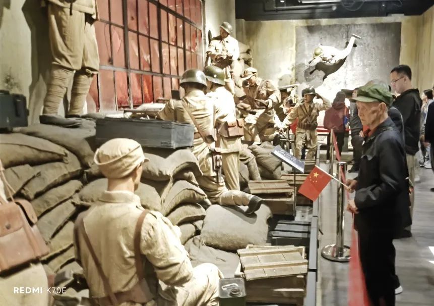 老兵们第一站来到四行仓库——这座承载着厚重历史的建筑,见证了淞沪会战中八百壮士的英勇抗战事迹。在讲解员的带领下,依次参观了“血鏖淞沪”“坚守四行”“孤军抗争”“不朽丰碑”四大展厅。展厅内的历史照片、实物展示以及多媒体影像等,生动地再现了那段艰苦卓绝的抗战岁月。