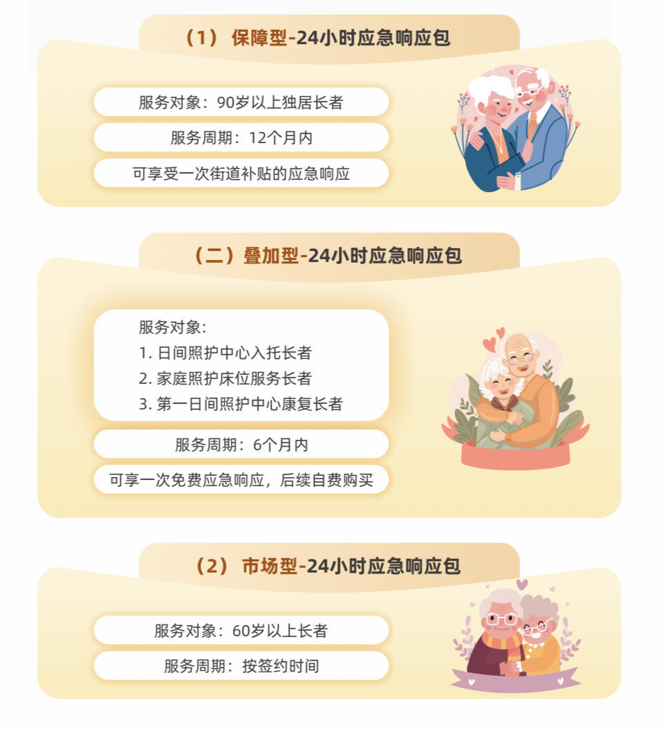 不仅如此,街道也在24小时应急响应领域先行先试,探索一条市场化的发展道路。项目落地过程中,除了覆盖托底保障对象外,街道对服务对象进行分层分类,采取适度普惠和市场化主导相结合的方式,让更多老人能按需享受服务的同时,也为项目持续发展优化提供了动力和探索空间。