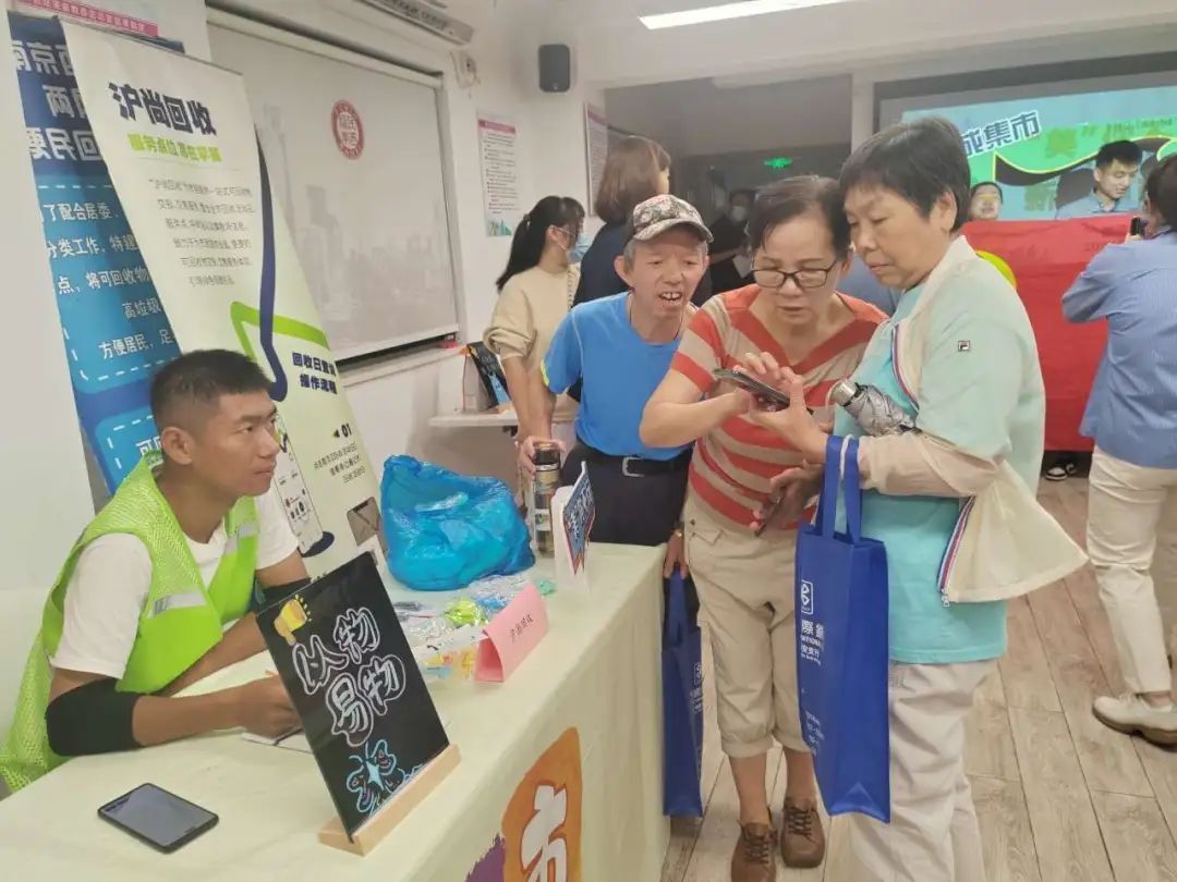 在新成食屋活动现场,“以物易物,乐享生活”的可回收物细分类参与环节也备受居民的青睐。居民们纷纷将家中的可回收物品带到现场,通过现场细分类投放,换取实用的小礼品。