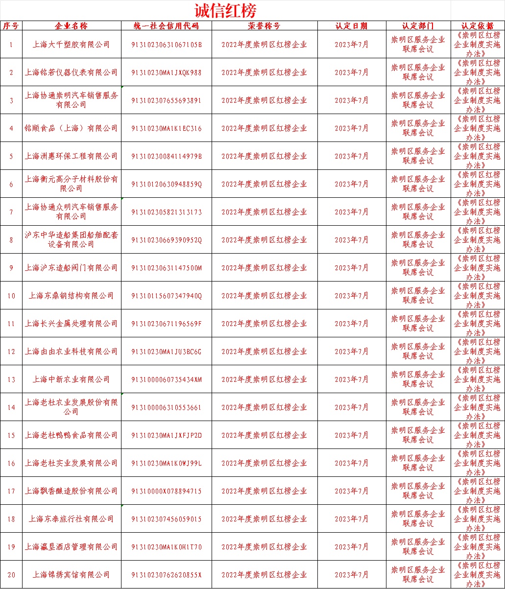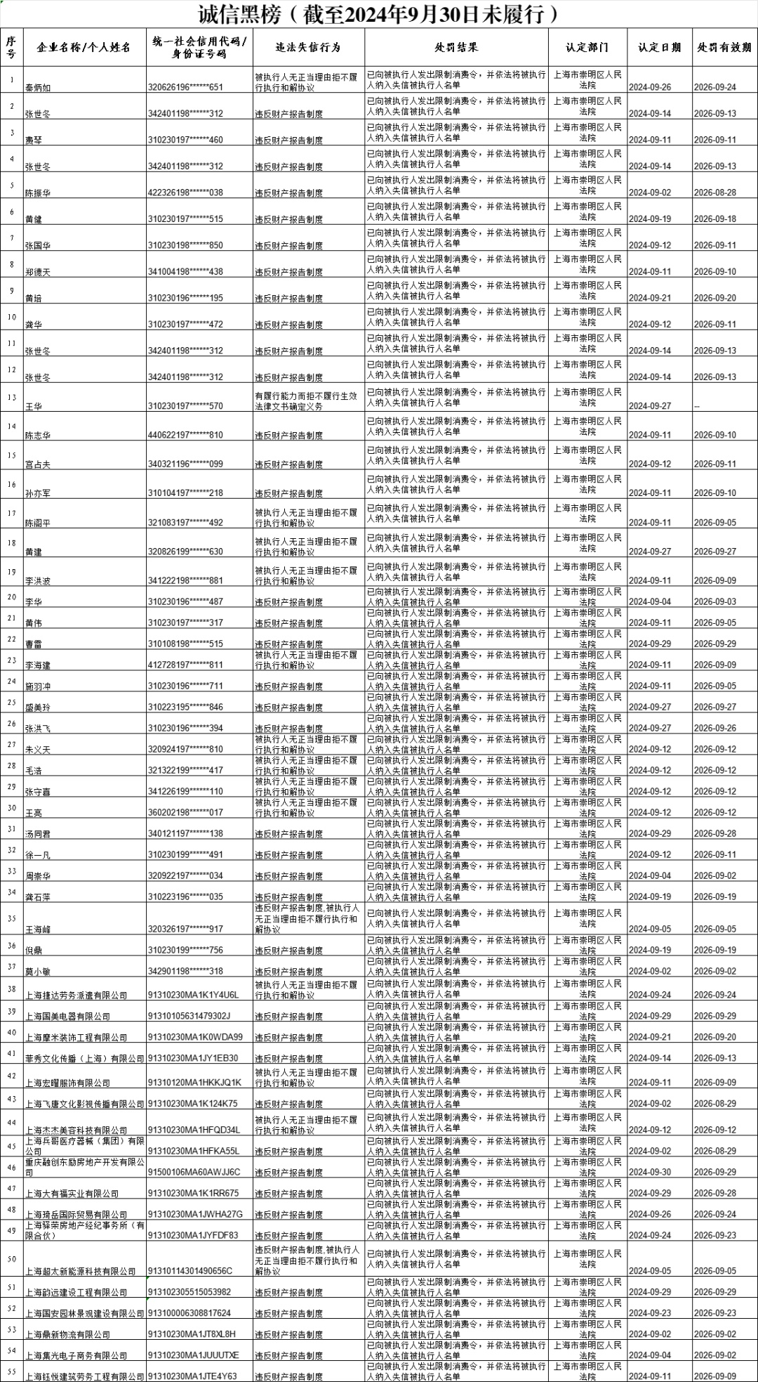 2024年9月崇明诚信“红黑榜”出炉,详↓