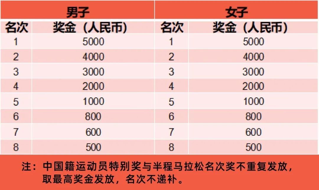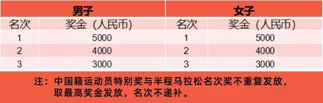 (二)中国籍运动员特别奖:按枪声成绩分别录取中国籍男女前3名,具体奖励标准见下表。(单位:元/人民币)