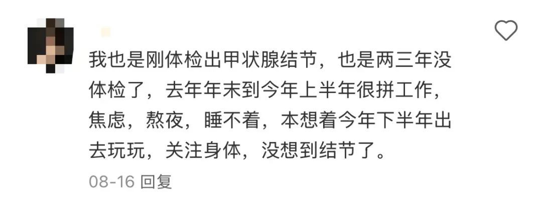 “那时摸到自己脖子上有一个突起的'小包’,当时心里很慌,到医院检查后才知道是甲状腺结节。”
