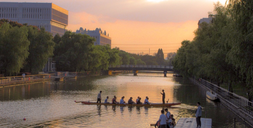 上海第二工业大学的校园里秋光潋滟,碧空如洗,桨影翻飞,呈现出青春与梦想交织的秋日画卷。