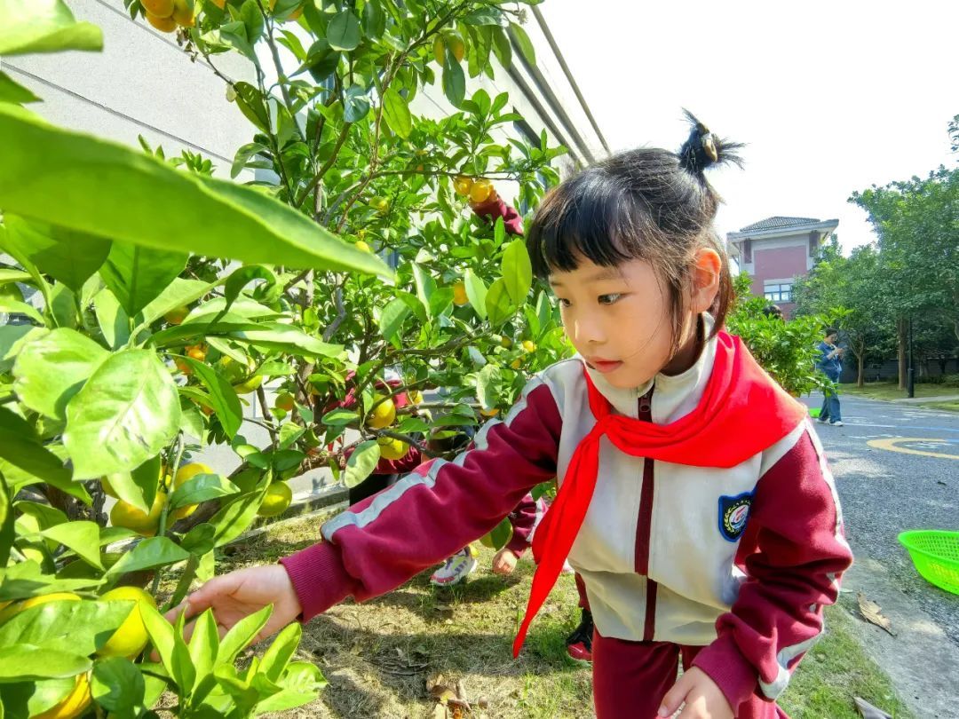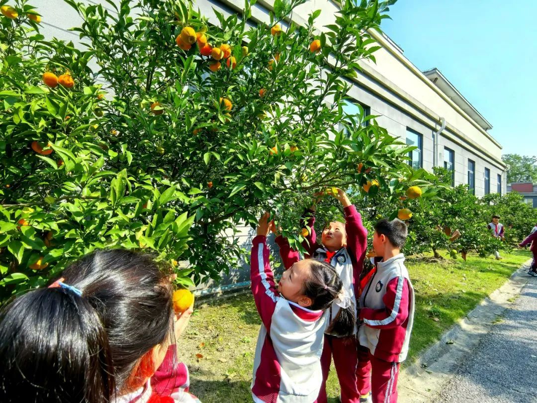 校园空间有效利用,劳动课程体验更加丰富。这几年,眼见校园里的果树从几棵到成片,品类从单一到多样,师生们开发果园的兴趣也越来越浓。九亭五小自然教师唐佳盛告诉记者,经过多次试种,老师们发现橘子树和柿子树比较好养护,果子成熟的时间也正值学生在校期间。因此,学校利用有限空间进行批量种植,打造了“墨宝果园”,目前园子里的橘子树大约有40棵,柿子树有10多棵。