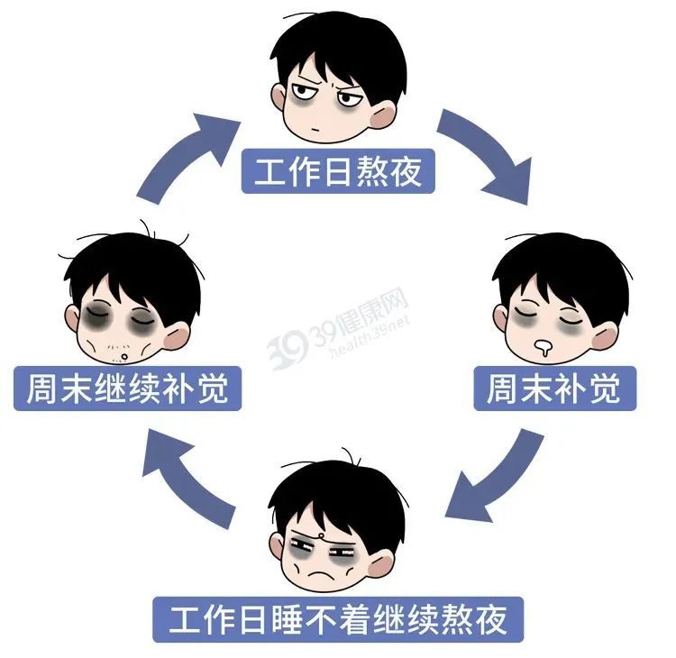 许多职场人习惯在工作日熬夜,然后利用周末补觉。然而,一项研究结果表明,周末补觉不仅会降低胰岛素敏感性,升高血糖,还会破坏昼夜节律,让你在下一个周期陷入死循环。