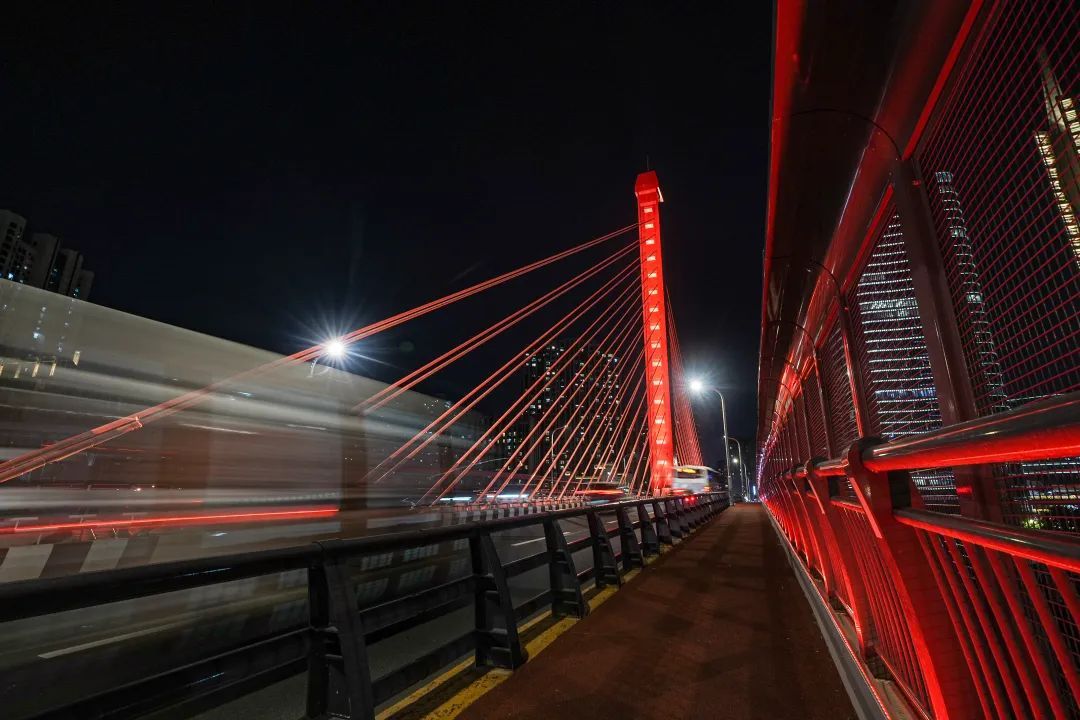 恒丰北路桥是上海南北向干道之一,全长613米,其中,斜拉桥主桥长151米,是我国第一座预应力混凝土独塔单索面斜拉桥。其位于普陀区与静安区的分界处,同时也是苏河“夜游”昌化路码头的重要可视点。
