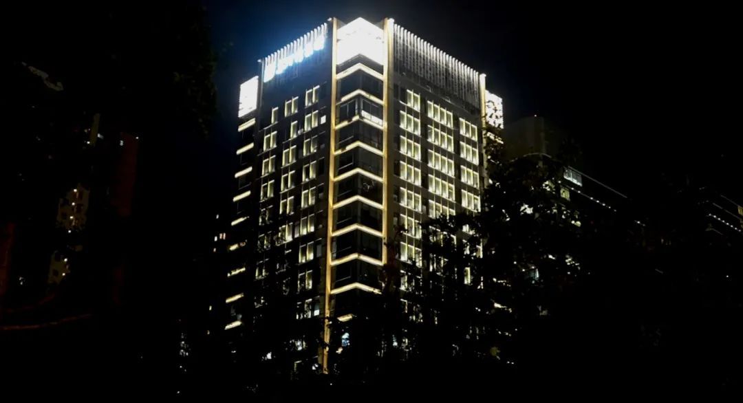 不夜城绿地旁的新发展大厦拥有极具强烈现代感的建筑设计风格。考虑到周边多为住宅和商办,且住宅灯光以内透光为主,商办灯光较为温和雅致,故在不打破原有的整体环境下,进一步提升了夜间灯光氛围。