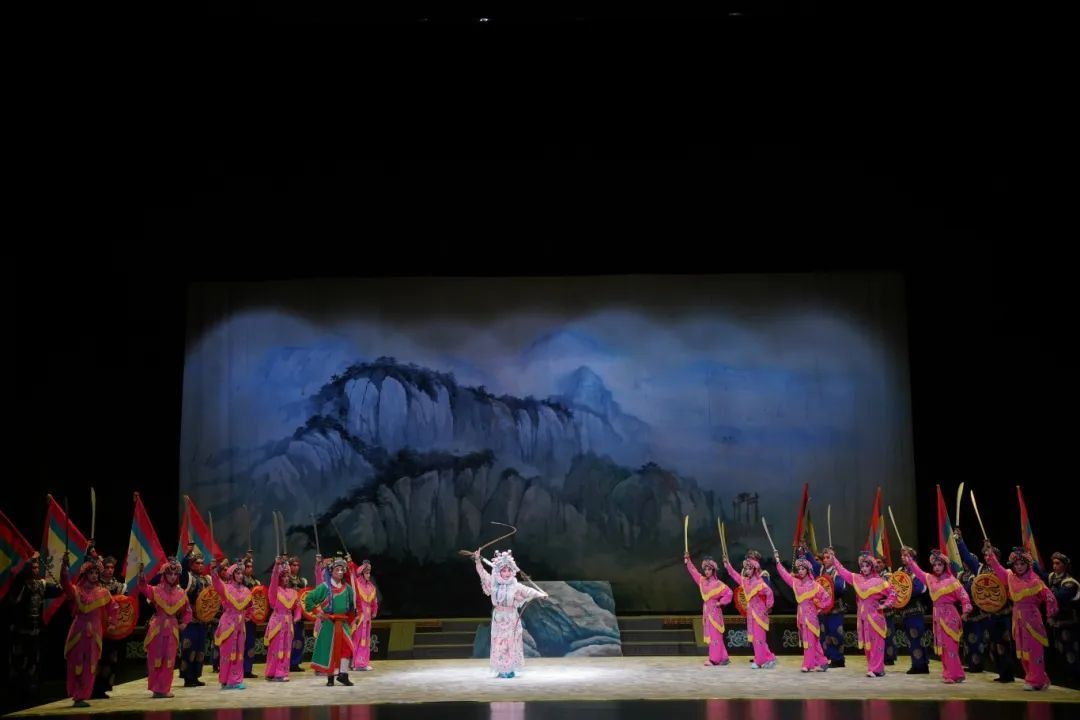 大幕拉开,好戏鸣锣。从陈前邂逅、寨上招亲、公媳交锋、辕门斩子到最后的大破天门阵,整场演出可谓高台画影,灯彩炫烁,锦衣明甲,锣鼓铿锵。