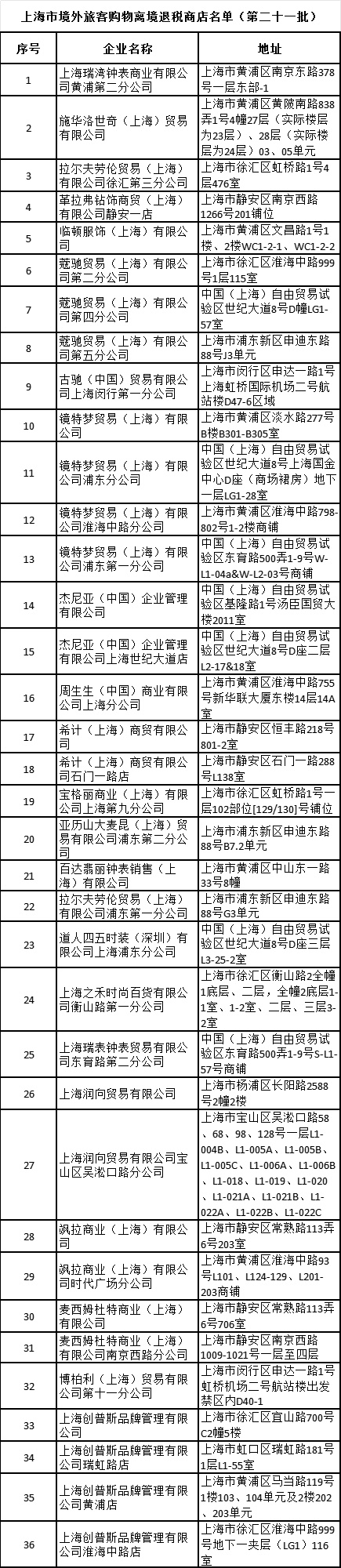 附件:1.上海市境外旅客购物离境退税商店名单(第二十一批)