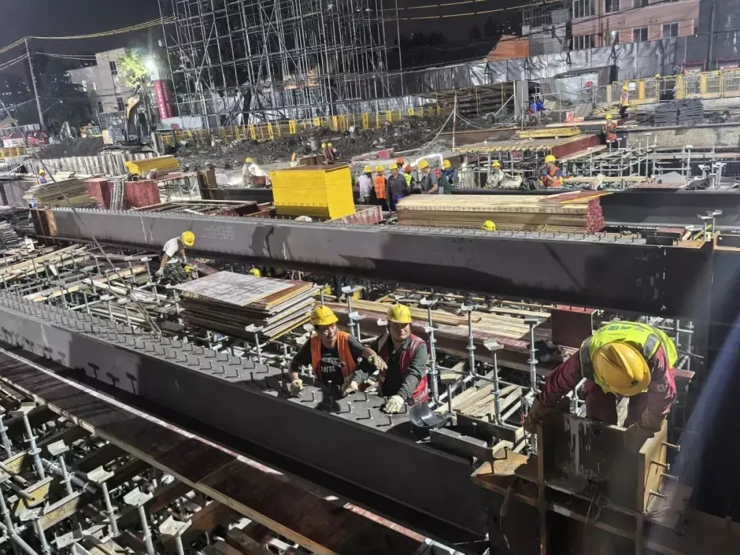 项目建设现场,机声隆隆、焊花四溅,工人们分工明确、奋战正酣,有条不紊地进行着施工作业,涌动着一股火热的建设热潮。技术员、安全员在现场监督,保障工程高质量完成。