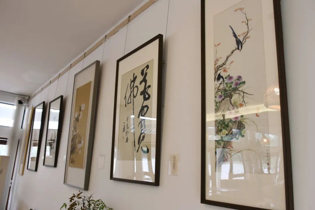 插花与书画艺术展区位于泓庄茶室,以菊花作为主体题材,共展示18件精美菊花插花艺术作品,结合瓶、篮、盘、碗、筒、缸的六大器皿,充分展现海派插花“自然、秀雅、时尚、多元”的特色。书画展主题为“自然与艺术的交融:共赏书画之美”,展区通过插花与书画艺术综合展示,让老百姓更深入体验菊花展精致、典雅的艺术文化气息。