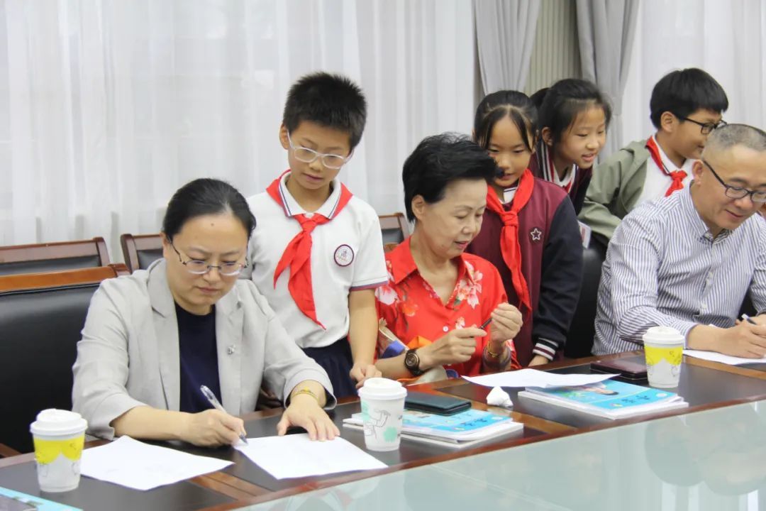 “您的写作灵感通常来自哪里?”“您在创作过程中遇到的最大挑战是什么?” “您是什么时候决定要成为一名作家的?” “您如何保持创作的新鲜感和持续的创造力?”“对于刚开始写作的学生,您有什么建议?”……面对面交流环节,学生们开启了“十万个问什么”模式。解疑答惑之余,作家老师们还开启了“成长小课堂”。松江区作家协会主席许平鼓励同学们常怀感恩之心,用心体味生活,在成长路上广阅读、勤思考、善规划,在阅读中汲取精神能量,培养自尊、自立、自强的品质。 揭牌仪式上,由五(5)班杨羽璇等同学原创的诗歌朗诵《一边烦恼 一边长大》令人眼前一亮。童稚的诗歌结合率真的表演,赢得台下阵阵掌声。九外实验校长王本运介绍,学校历来重视打造书香校园,不仅设置了“朗读亭”“小思墨镜读书吧”和“转角遇到书”等开放式阅读空间,还有《亭风》校报、《亭蕾》《亭韵》校刊定期推出。不少班级也自发组织阅读与写作活动,甚至“出版”了班级文学作品集。“成为松江区作家协会文学进校园项目基地后,学校将携手区作协,不断丰富文学阅读与创作活动,营造更加良好的校园文学阅读和创作氛围。”王本运说。