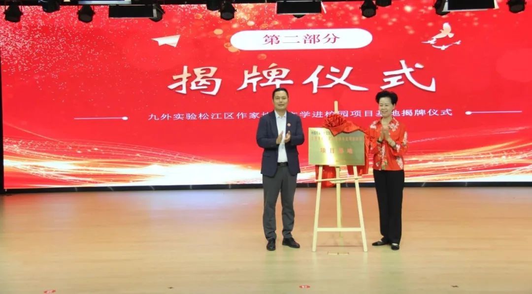松江区作家协会文学进校园项目基地揭牌仪式日前在九里亭外国语实验学校(九外实验)举行。揭牌仪式上,学生们在对话松江区作家协会会员老师的过程中,点燃了阅读与写作的热情。