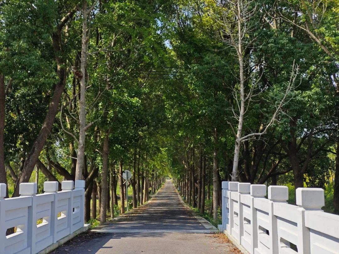河道南侧修建了一处百花港开放休闲林地,是一个可露营、烧烤、骑行的休闲地带。林地建设以“春赏百花秋赏槭,最美乡野享乐行”为主题,分为荷塘寻趣、花港漫步区、生态环保区、松林康养区四个主题区。通过林相改造、增植四化树种和休憩设施等措施,保留了森林的自然状态,同时使走不进的森林变成“可穿行的绿洲”。踏入园内,可以沿着两侧林木铺排的步道散步,体验滨水平台、中心景观广场、趣味休闲节点等多个不同的休闲功能区,观赏秋日缤纷色彩染上繁荫。