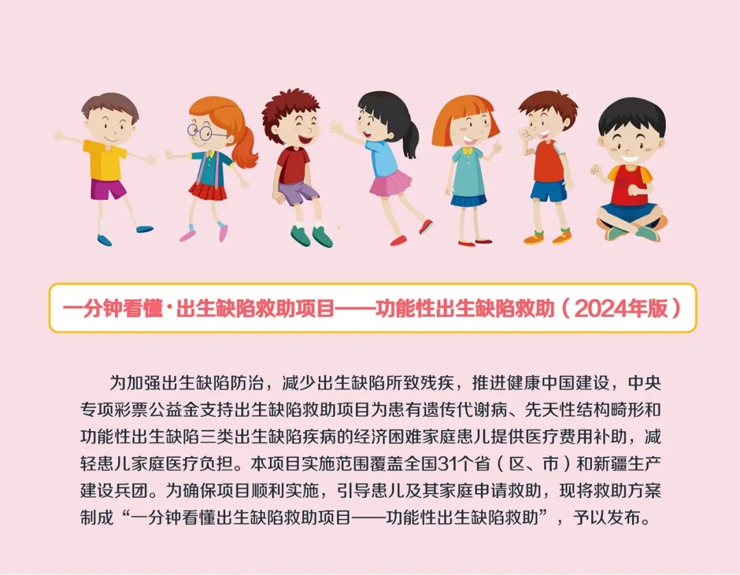 一分钟看懂 | 出生缺陷救助项目——功能性出生缺陷救助(2024年版)
