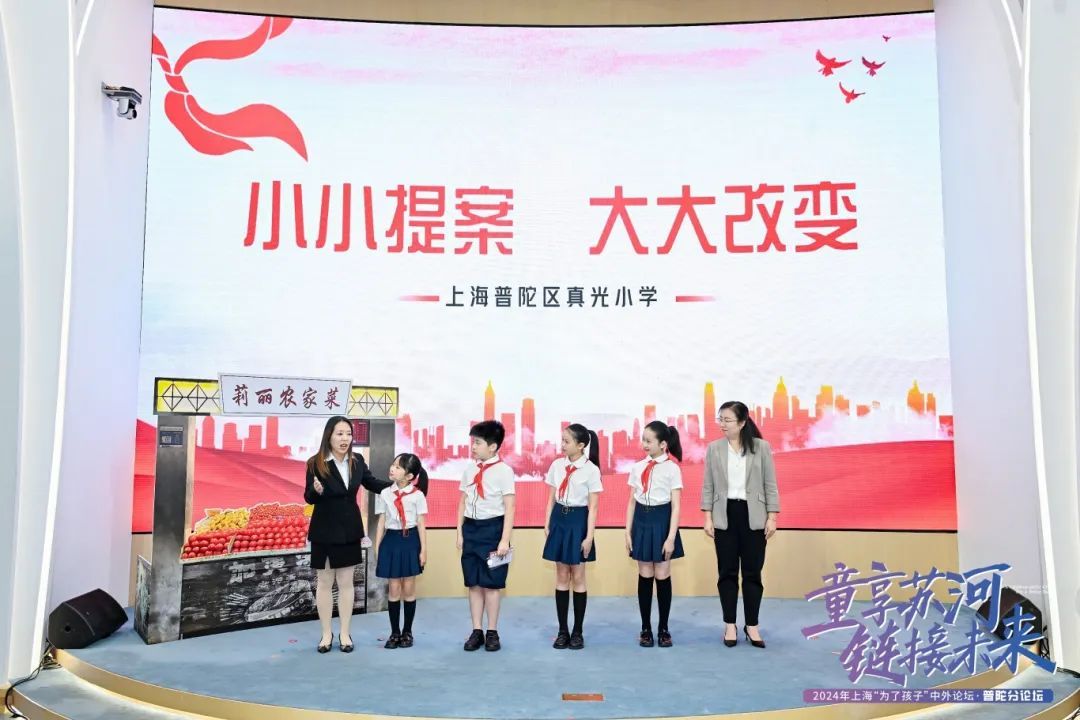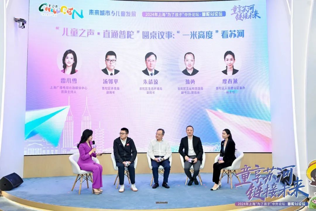 在“儿童之声·直通普陀”圆桌议事板块,不同年龄段的儿童代表用儿童情景剧形式,展现了“小小儿童议事员”们从发现问题、到调研走访、并集思广益形成提案的“一米高度”看苏河全过程。区人民建议征集办、区生态环境局、区文旅局、区体育局相关负责人积极回应了孩子们的“金点子”和“小提案”,并表示将进一步打造儿童议事的直通车机制,培养全过程人民民主的后备力量,将儿童视角纳入城市建设意见征集体系,把儿童之声转化为城市建设的具体举措。