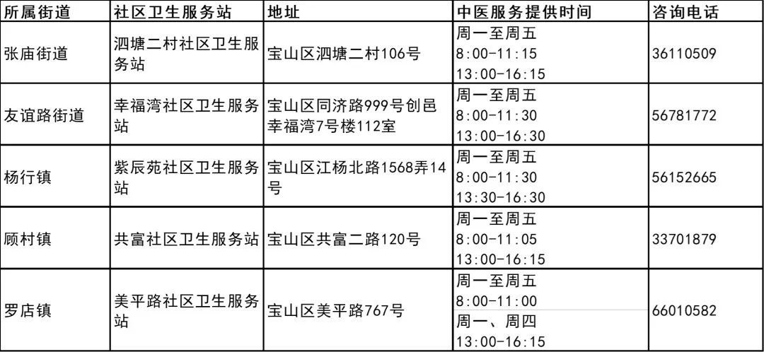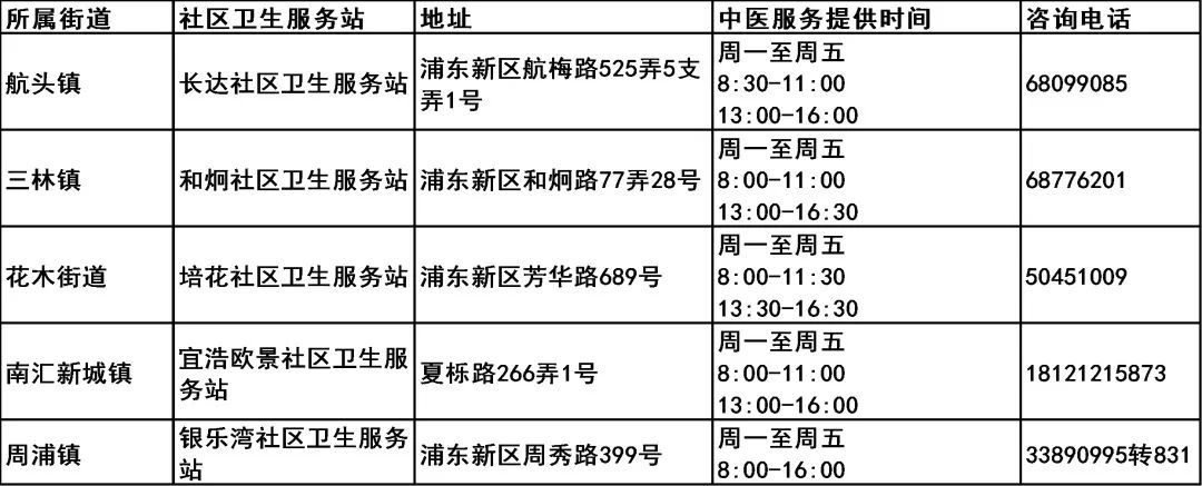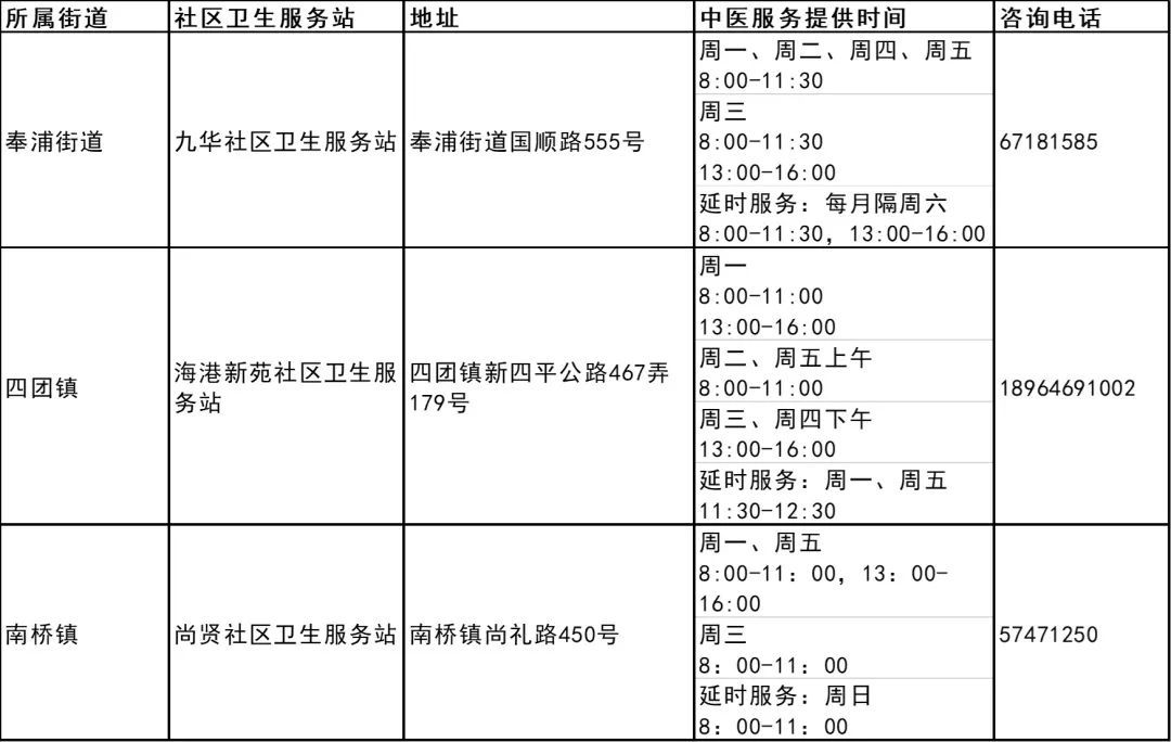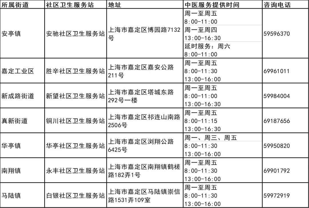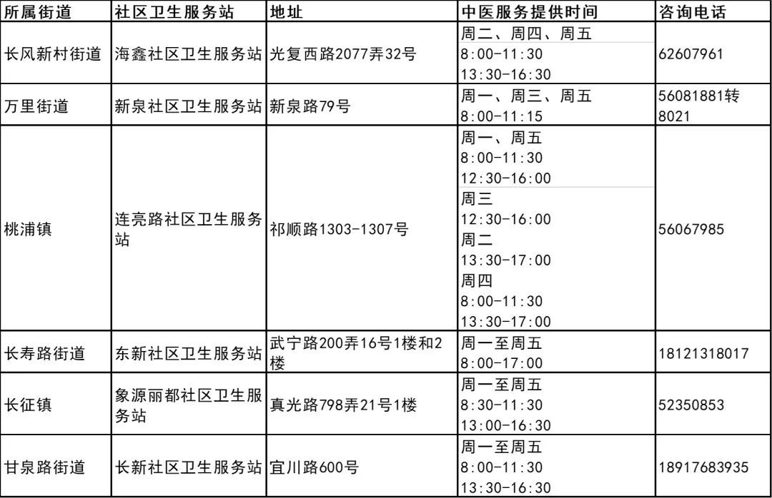 60家中医药特色巡诊社区卫生服务站开放服务时间表