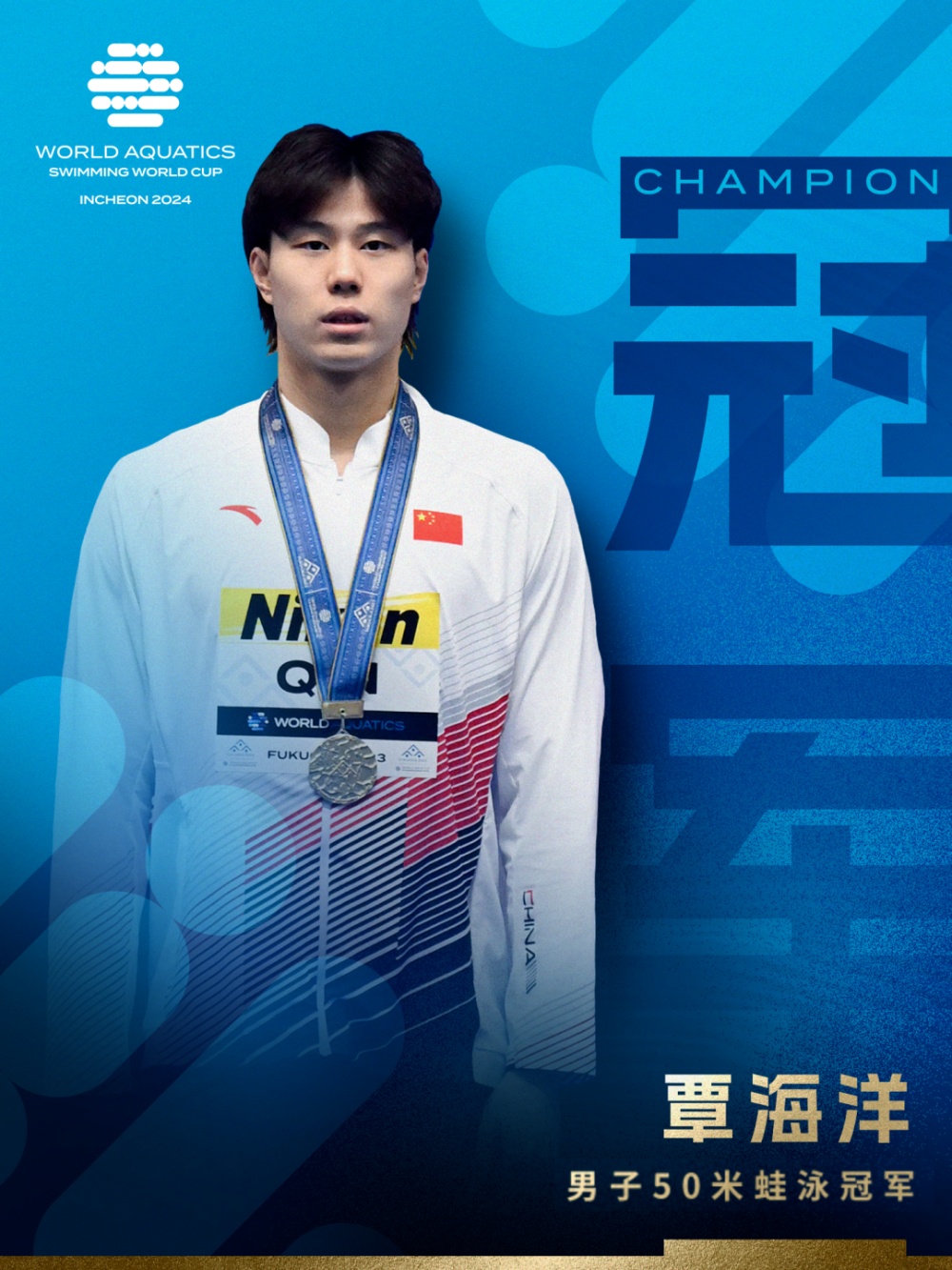 10月25日,2024年世界泳联游泳世界杯仁川站进入第二个比赛日,来自上海的中国队覃海洋和唐钱婷分别在各自项目中夺冠,中国队余依婷则收获银牌。