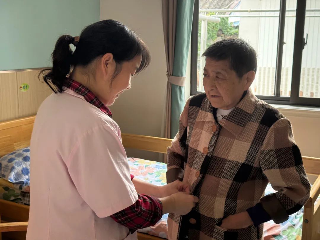 周红芬告诉记者,敬老院90%的护理员是嘉定人。由于老人更习惯说方言,所以招聘护理员时首先考虑到老人的沟通需求,每一位护理员都要做到能用嘉定话进行日常交流。