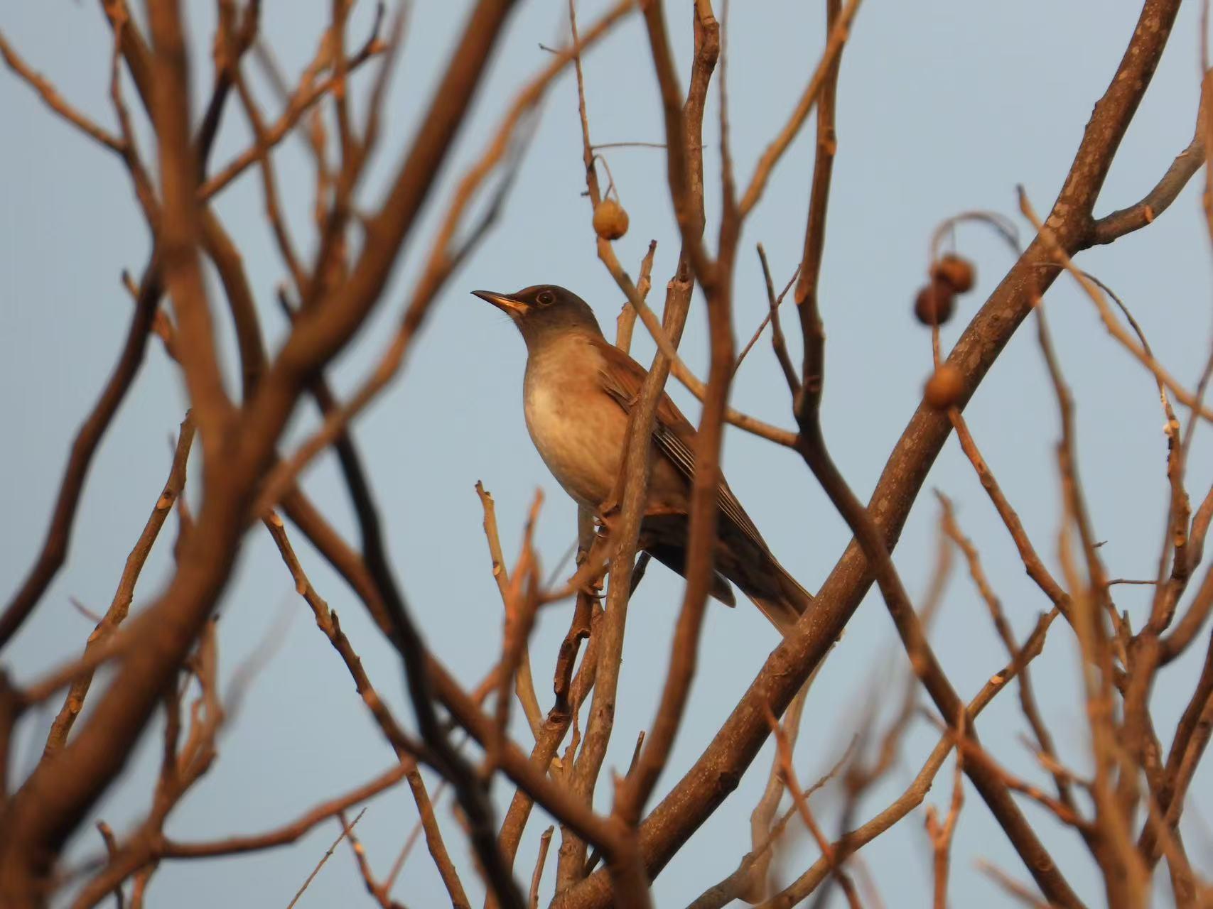 高中生学业繁忙,在王乐阳看来,抬头望天,追踪鸟的踪影,是种很好的调节方式,而且,这是随时随地都能去实现的爱好。在世纪公园的黄昏,他见到成群的夜鹭返回大树栖息,“夜鹭之家”不远处,便是居民楼的万家灯火;在春天的大树上,乌鸫的巢里伸出两只毛茸茸的小脑袋,迎接父母找来的虫子。当然,也有一些画面令人唏嘘——鸟儿在水塘里觅食,身后,是推土机扬起的尘土……这让人不禁思索起人和自然如何和谐共生。王乐阳告诉同学们,其实不用远行。尽管学校地处繁华的中心城区,但是他也陆续在校园中发现了近20种小鸟,看到过红隼在居民楼附近盘旋,听到过暗绿绣眼鸟在树丛中叽叽喳喳地鸣叫。