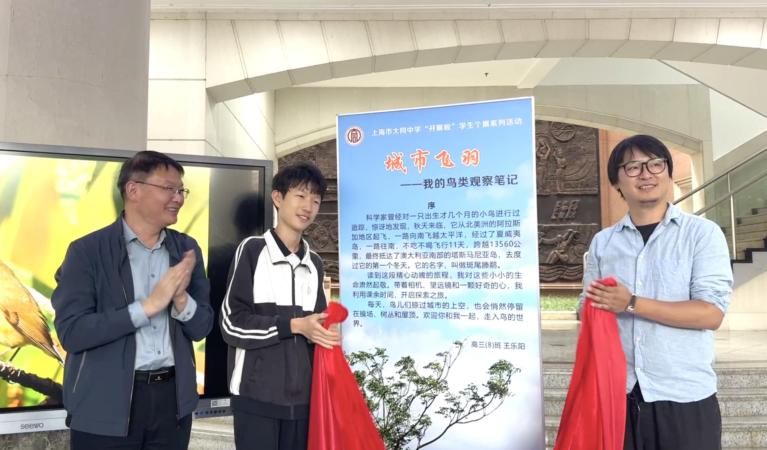 10月19日至25日,是第十届上海国际自然保护周。10月25日上午,在上海市大同中学,一场主题为“城市飞羽——我的鸟类观察笔记”的“开展啦!”学生个展系列活动在校园中揭幕。高三(8)班男生王乐阳通过上百张图片,向同学们展示了他在四年多观鸟过程中的收获和感悟。