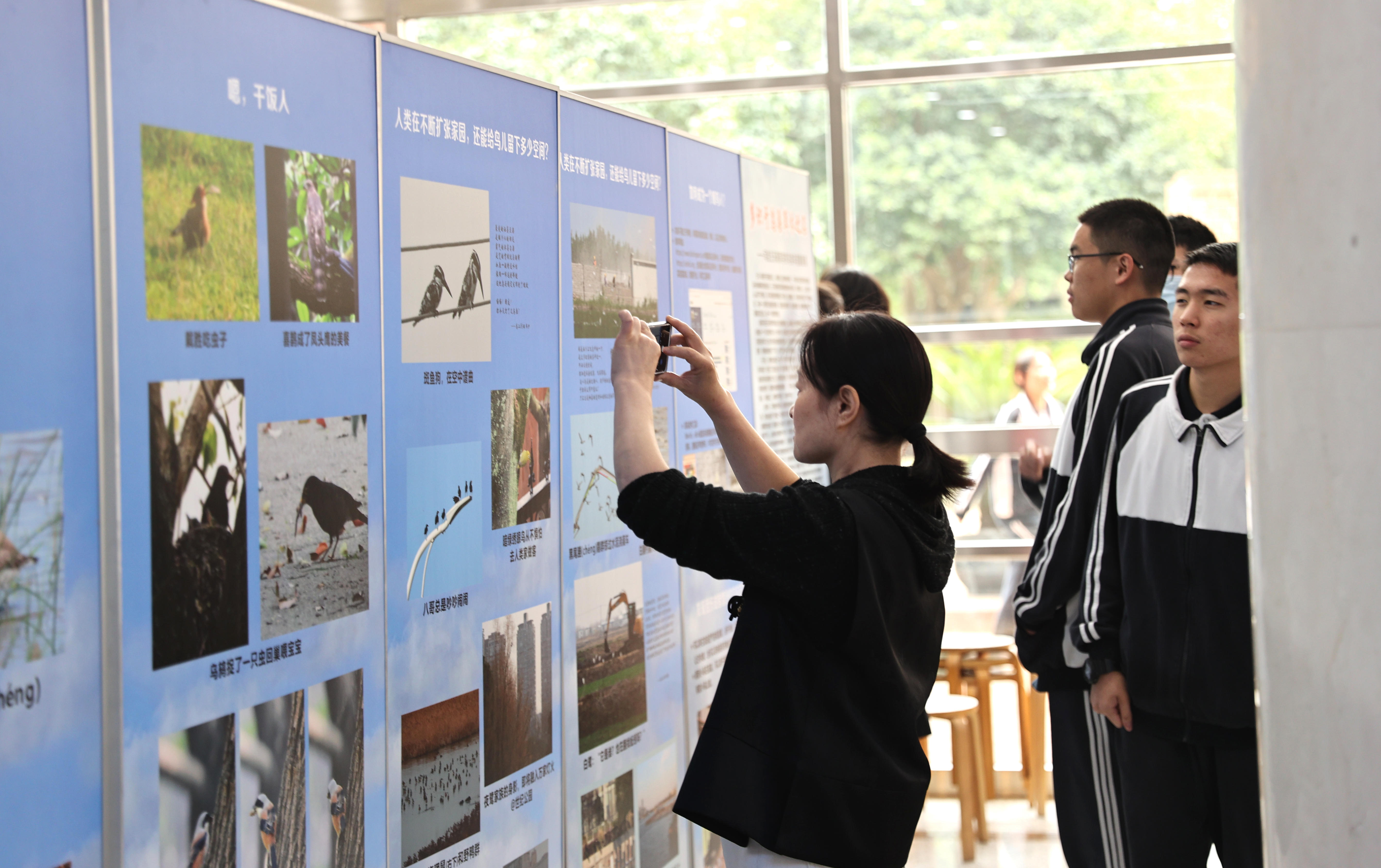 百余张照片,也很快在同学们中间产生共鸣。在文学社指导教师宋士广引导下,一群热爱诗歌的同学们从画面中获得灵感,写下诗句。在高二(8)班倪嘉逸眼中,树上的白头鹎是“一位老年歌唱家”,“她总是顶着一头白发,沉溺在银铃般清脆婉转的音律中”。见到白鹭和推土机的“合影”,高二(6)班薛芸感叹,“灰蒙的迷雾里,乌鸦在派对狂欢;贫瘠的水田边,白鹭正低头徜徉……铲斗翻耕的土地满是蚯蚓和昆虫,白色的精灵暂且原谅了曾追杀它的死神”。 宋士广坦言,孔子说,诗歌的功能之一是“多识于鸟兽草木之名”,起初他并不理解。后来,他渐渐领悟到,“多识其名”不仅仅是为了知识而已,而是循此而知鸟兽草木之性,知农事和自然,进而能够热爱自然、热爱生活、热爱这个美丽多彩的世界。
