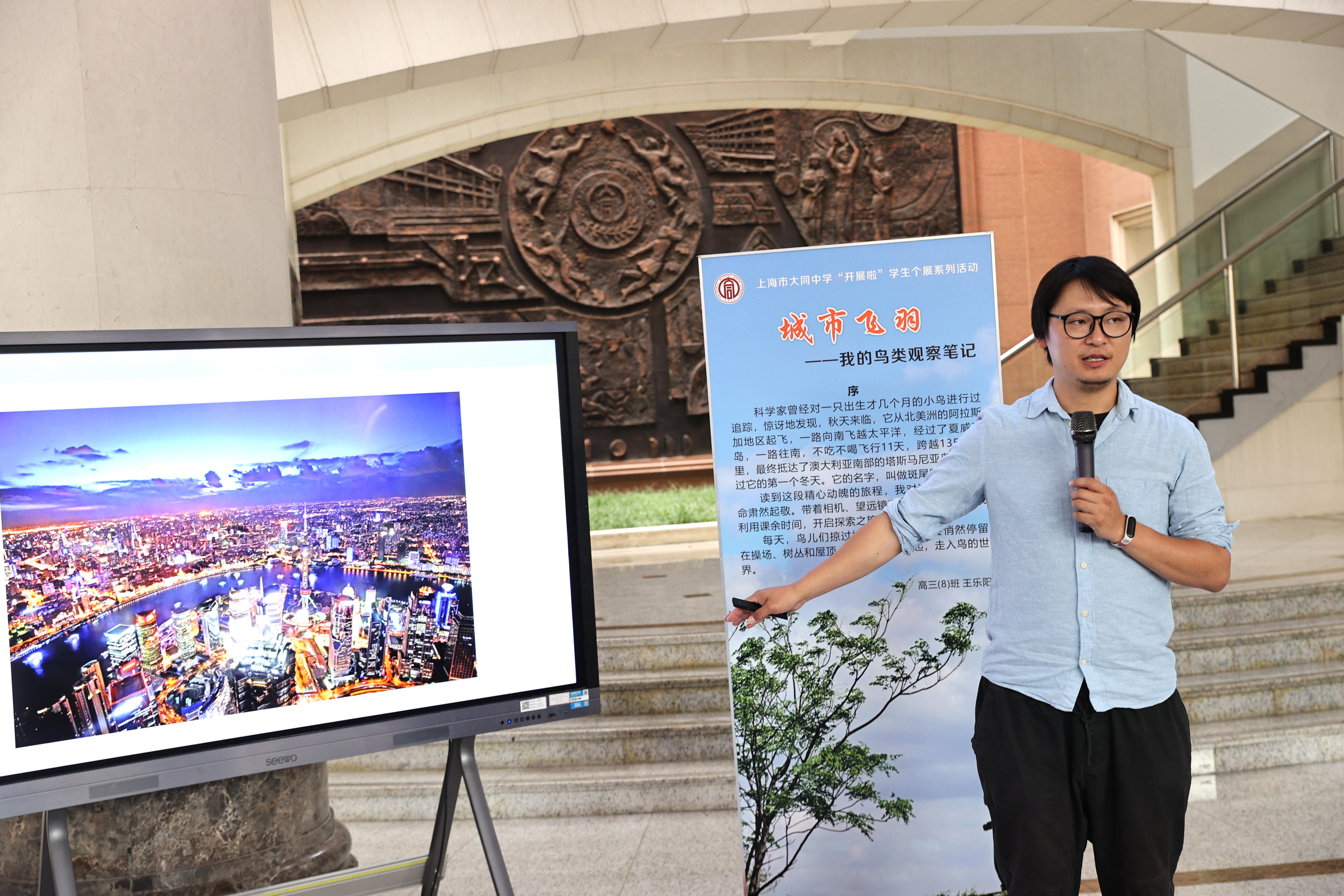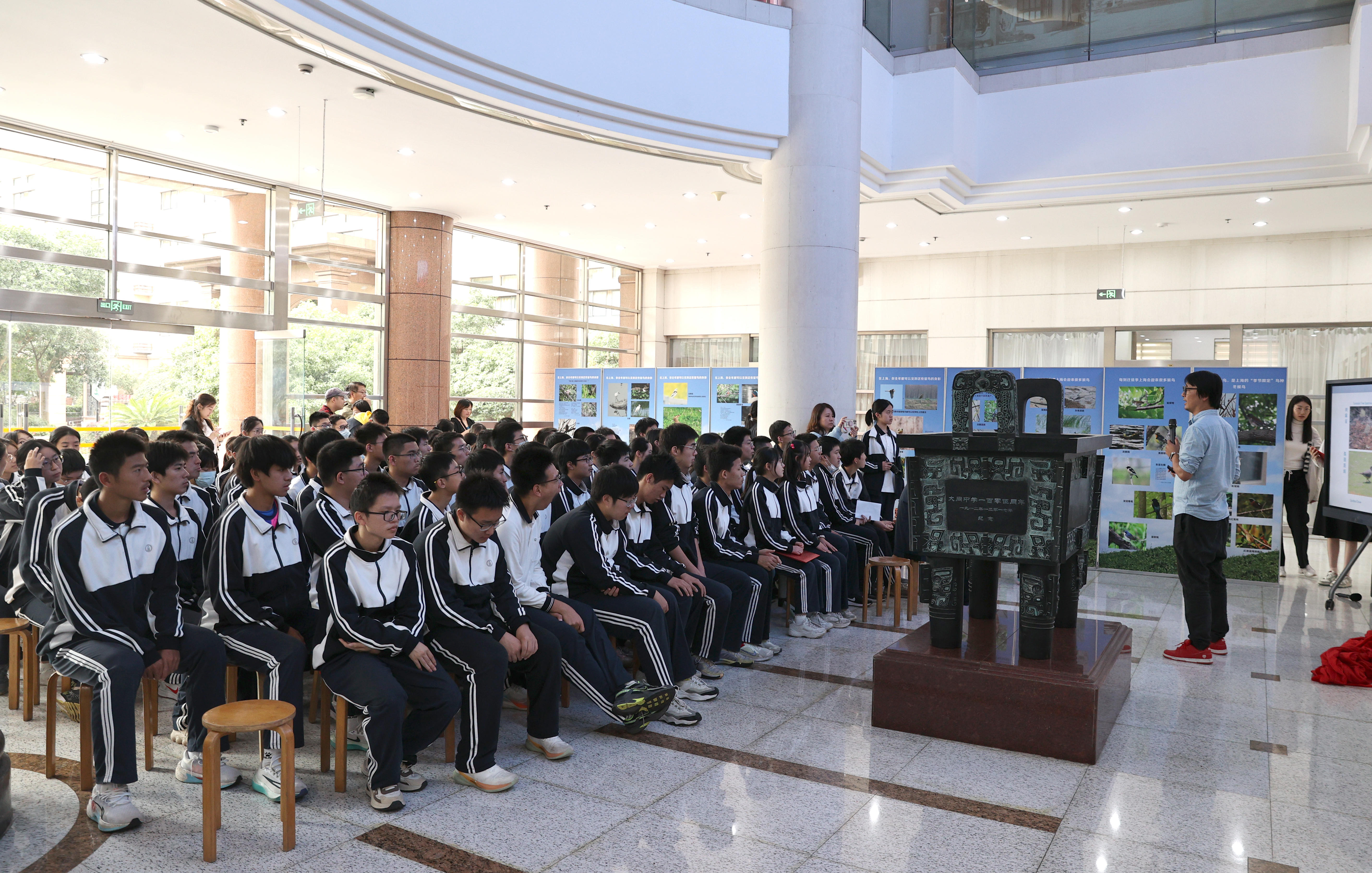 在展览揭幕的同时,学校还邀请上海自然博物馆副研究员何鑫用一场微讲座,向同学们讲述鸟类在迁徙过程中的故事。