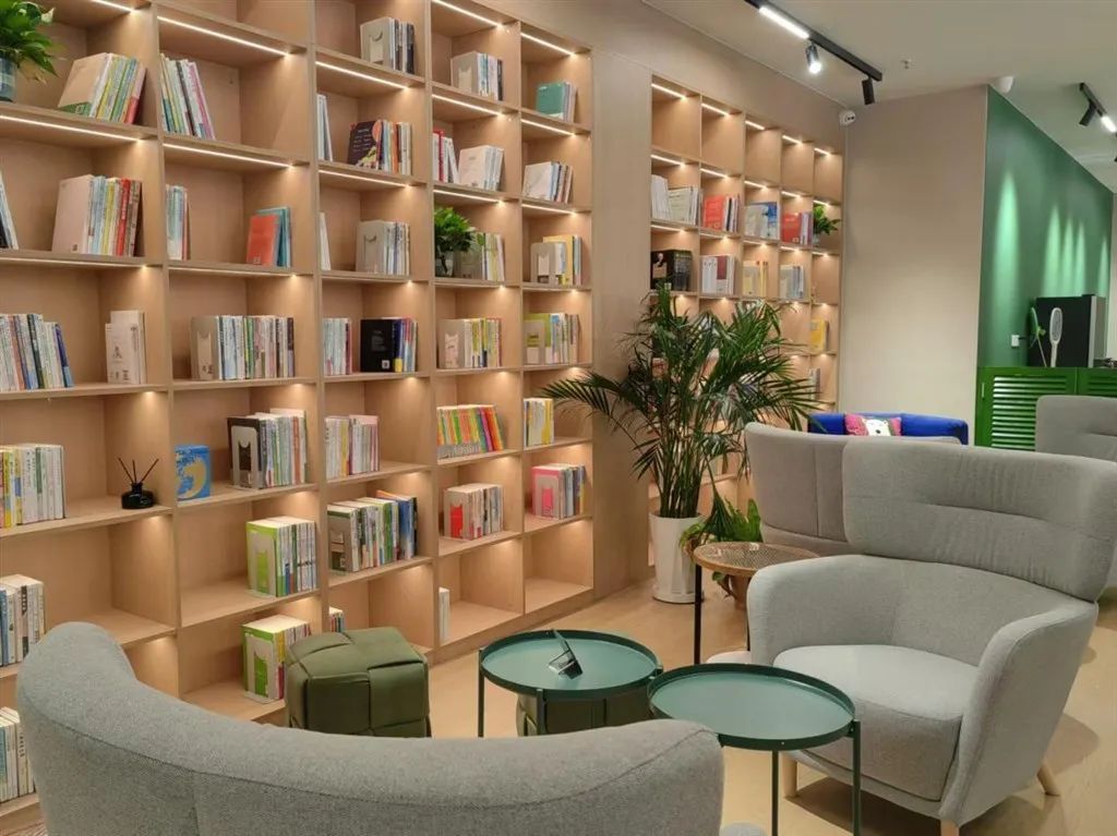 除了引人注目的商品展示区,这里还有阅读区、咖啡吧、为老服务站、活动空间与心理咨询室等。超市外沿街还有一间为户外工作者开放的休息室,内有微波炉、饮水机等设备。