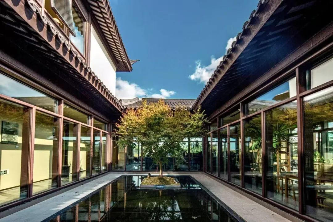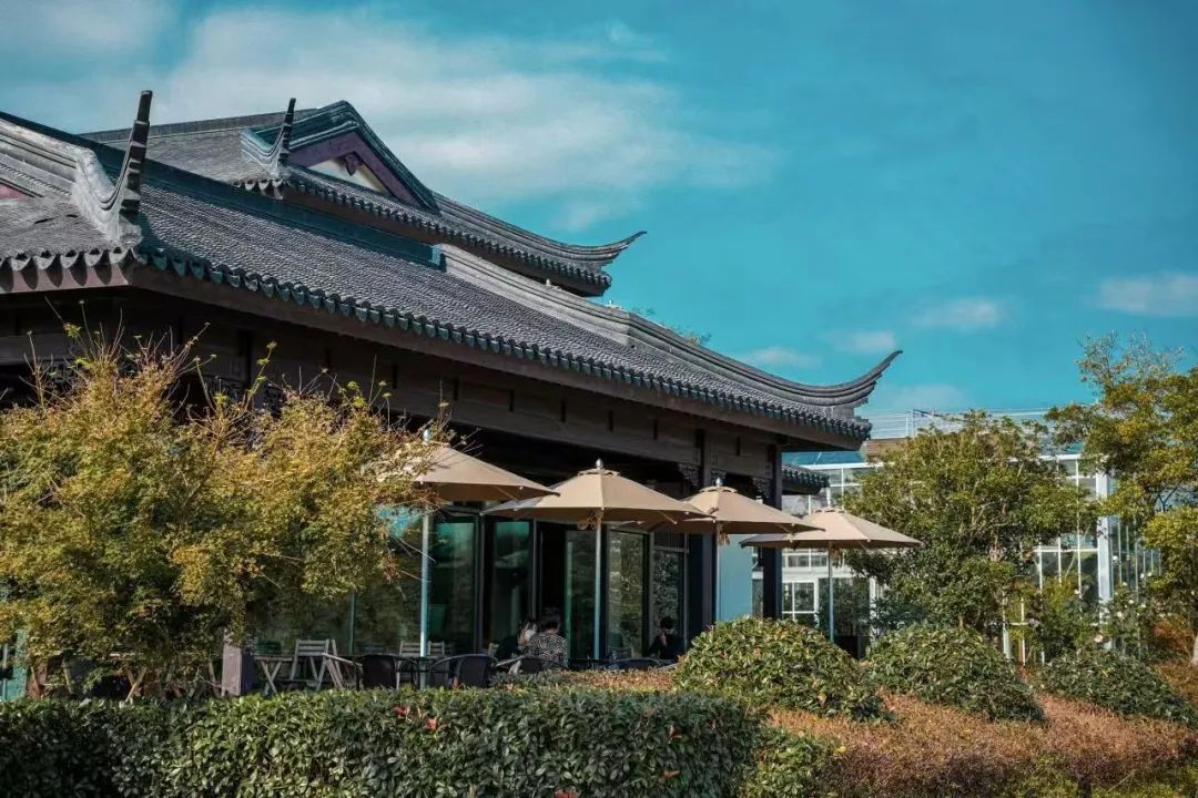 一尺花园华亭店占地面积1600平方米,虽然在全国70多家门店中体量不算大,但功能区域上更具有延展性。其空间布局在更加广阔的田园乡村,没有围墙的束缚。除了主体的中式院落厅堂外,还有温室花园及大片的稻田、林地配套,让游客的视觉感知和活动空间更加开阔,身心也在一定程度上更加放松。