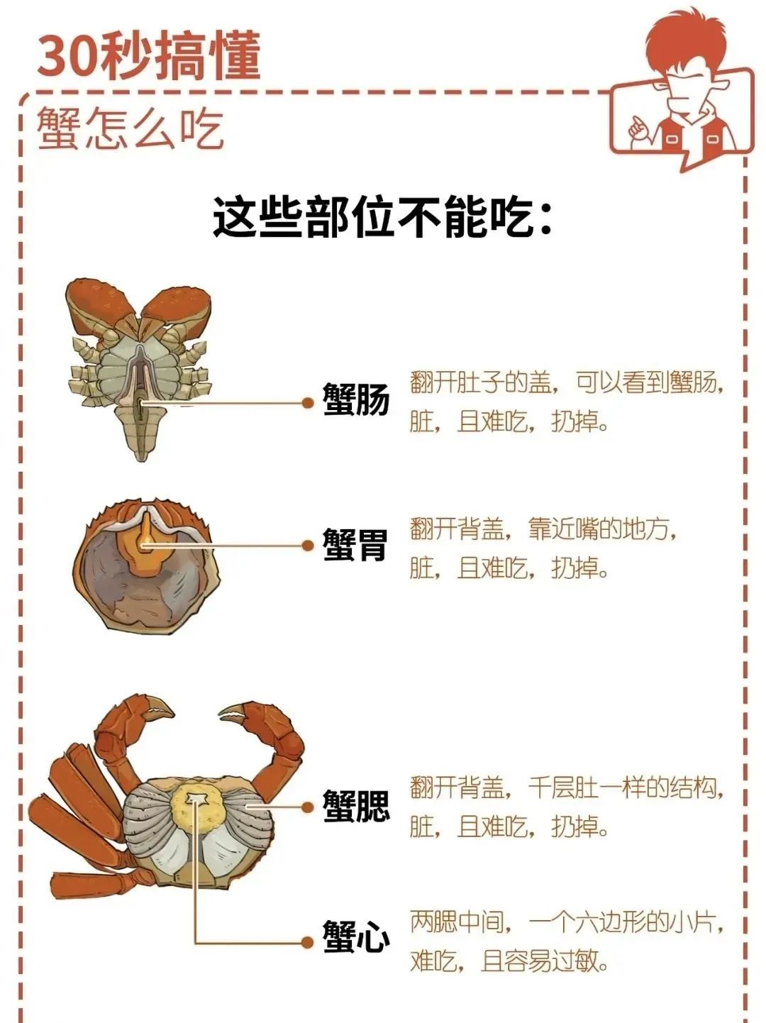 孕妇吃螃蟹需适量,别吃“生腌”,避免感染寄生虫,危害孕妇和胎儿健康。