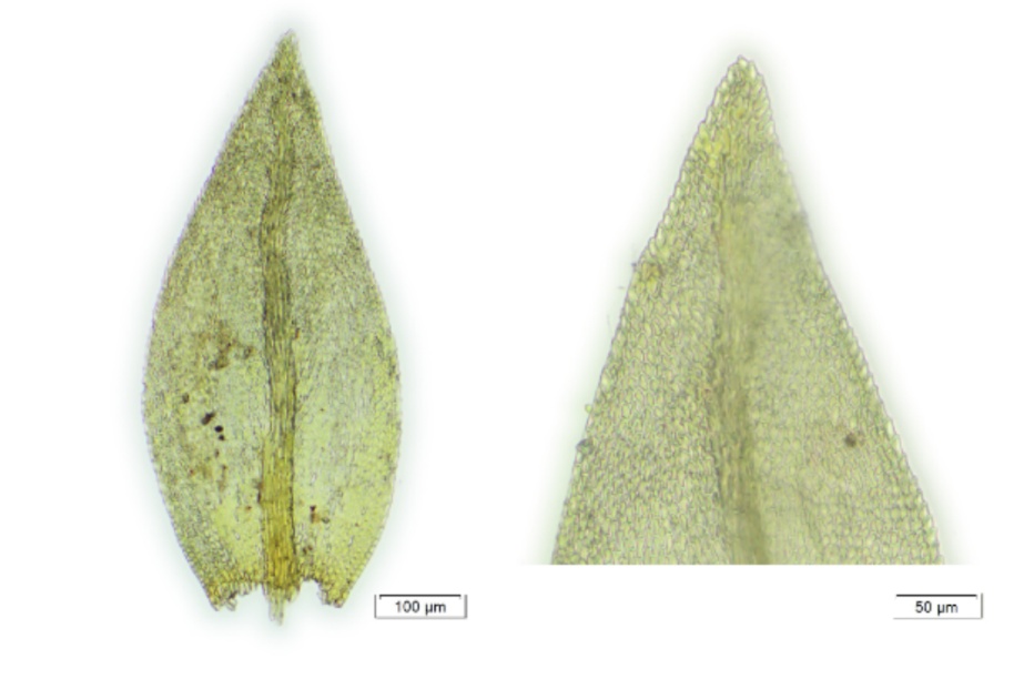 形态特征:植株较纤细,柔弱;密集交织成片生长,茎叶多列,阔卵形向上呈披针形,先端渐尖,叶边上部具细齿;中肋粗壮,达于叶尖前终止;叶细胞长菱形或长椭圆形,壁薄;孢蒴长椭圆形。