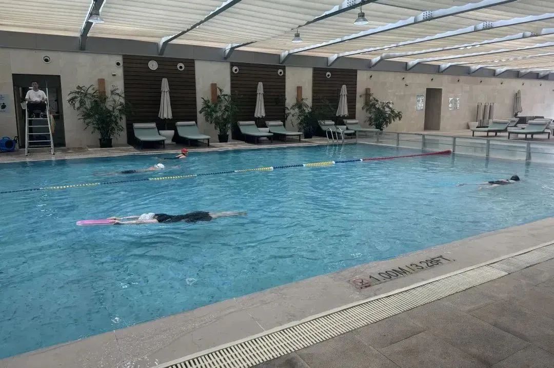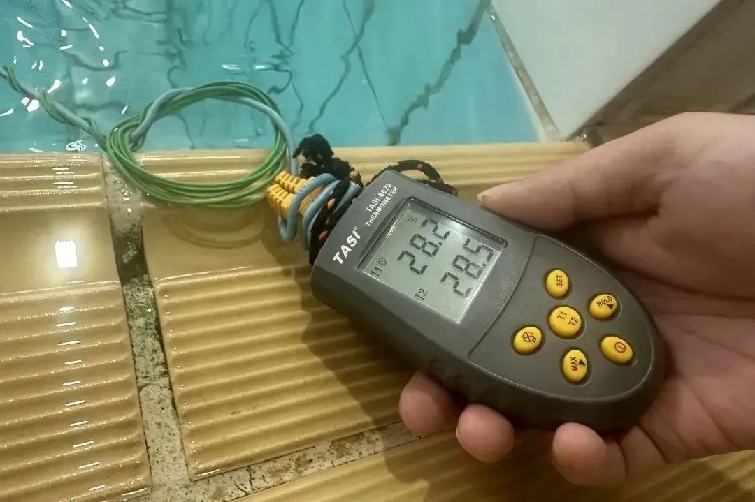 上海嘉定喜来登酒店健身中心的游泳池也已开始加温,室内空调全面开启,同时工作人员每隔2个小时就会用测温仪测水温,以保障客人的游泳体验。