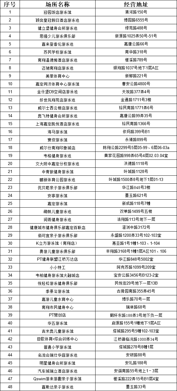 48家游泳场所信息