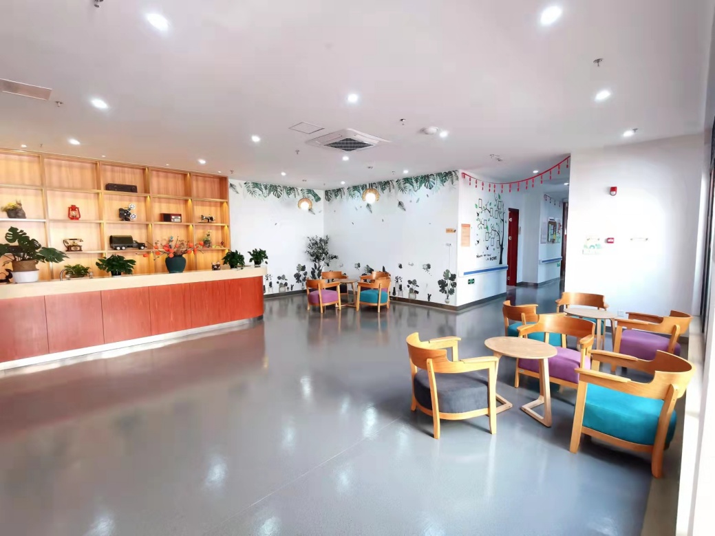 上海市第一社会福利院认知障碍照护专区建筑面积约730平方米,设有5个照护单元,共60张床位。专区采用小单元式家庭照护模式,以温馨的色彩布置、多样的活动空间和家庭式场景设计,积极营造疗愈性认知障碍关爱友好环境。配备专业照护团队,根据认知障碍长者个体差异,提供定制化服务,定期开展模拟家庭、音乐疗法、芳香疗法、园艺疗法等活动,强化锻炼老人的专注力、表达力、定向力等,延缓认知障碍发展进程。同时,配备智能看护系统、虚拟电子围栏、陪护机器人、智慧健康检测随身包等,全力保障认知障碍长者晚年生活。此外,还成立家属志愿者队伍,通过亲人共情和鼓励,不断增加认知障碍长者情感支持和社会支持,助力提高认知障碍老年人的生活质量。