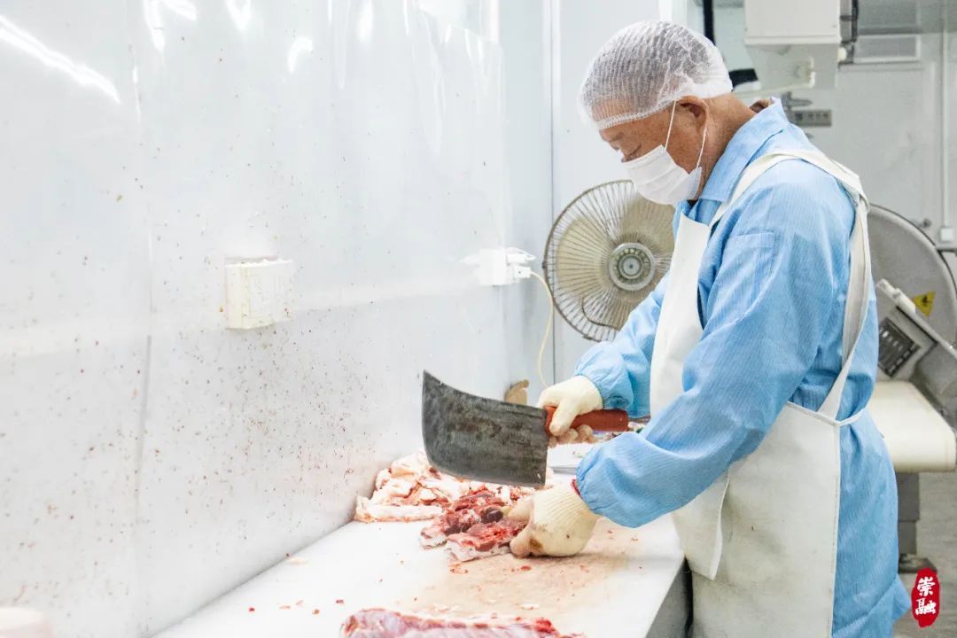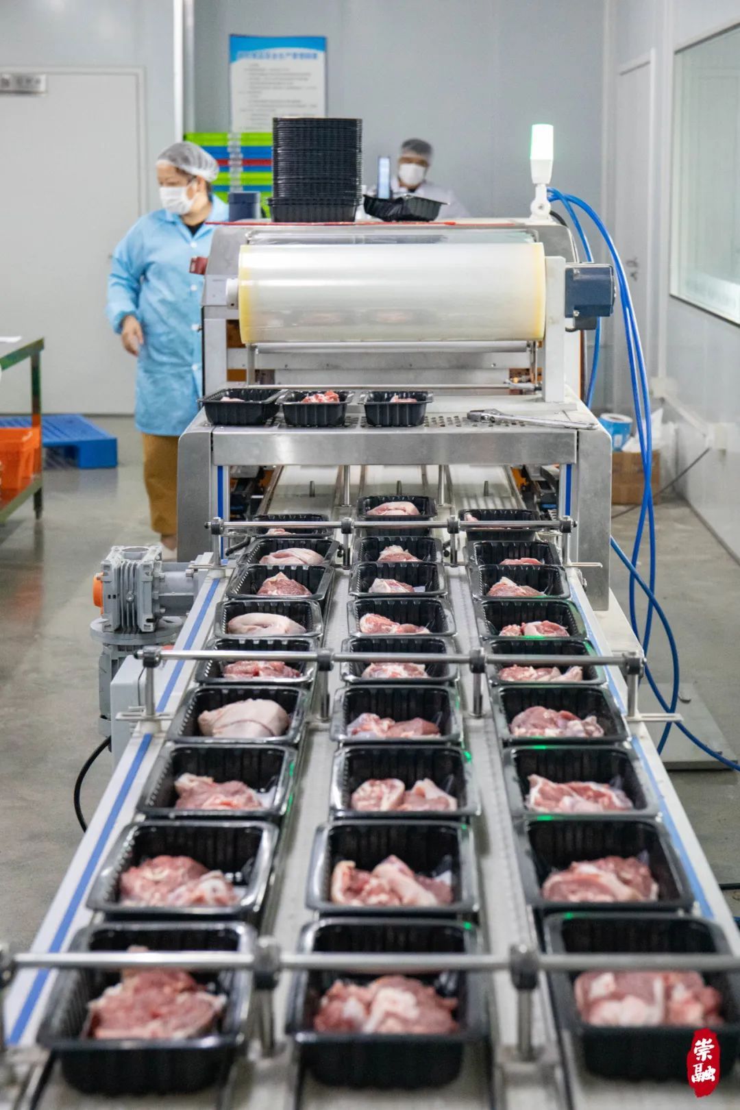 在崇明,同样有着较高知名度的上海古宗白山羊专业合作社,近期也迎来了销售旺季。加工车间内,工人们手脚麻利地分割着羊肉,再根据不同部位分拣、打包成净重300克盒装的羊腿肉、羊排、羊腩等。合作社销售负责人郭旭晨介绍,在他们的氮气保鲜包装流水线上,这种规格的羊肉每天可封装近2000盒,羊肉含有较高血红蛋白,味美不膻,羊腩、羊蝎子等品类都很热销。