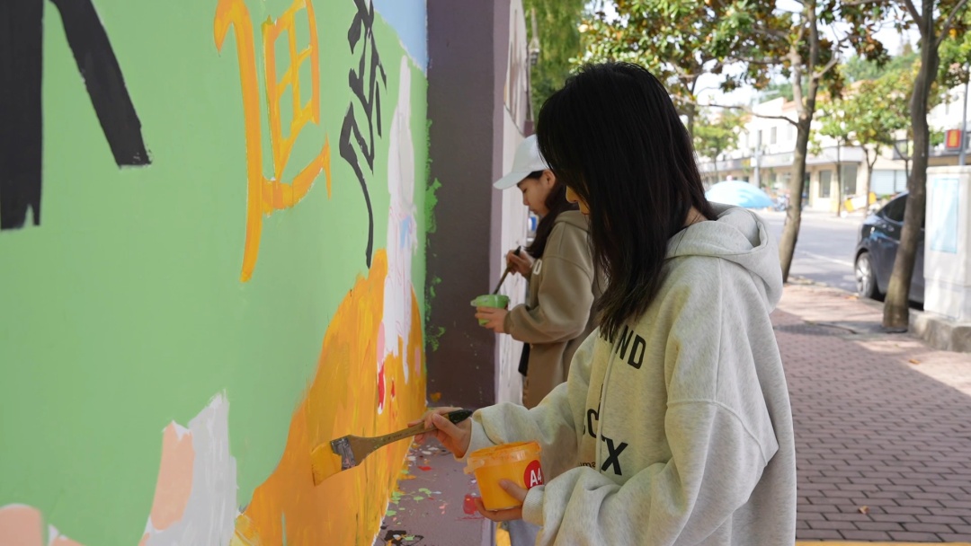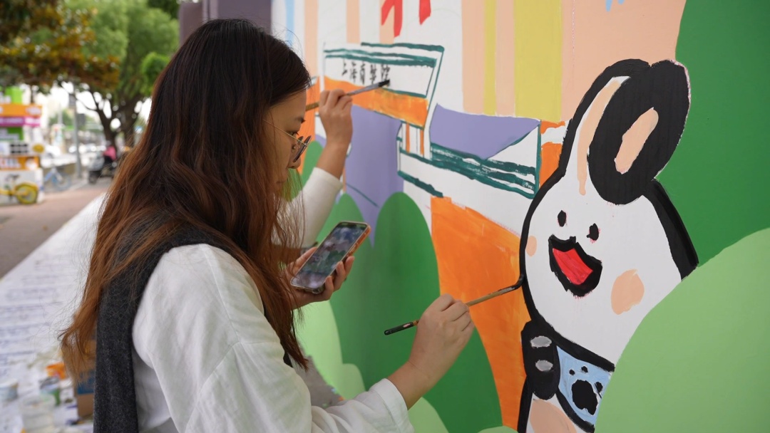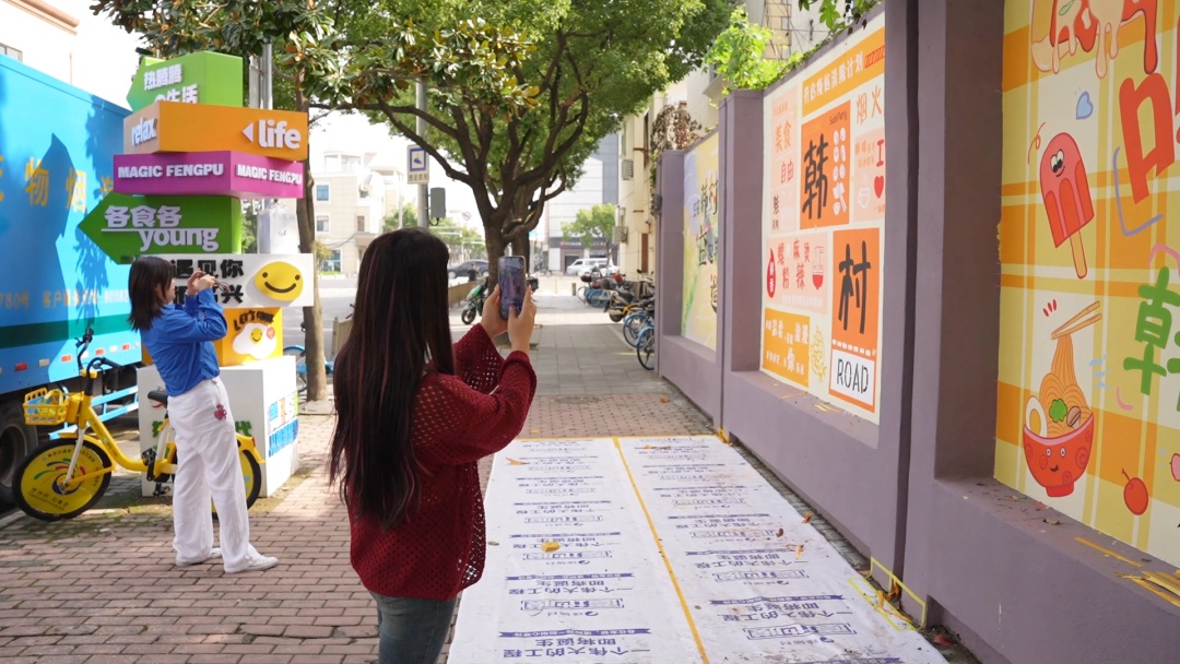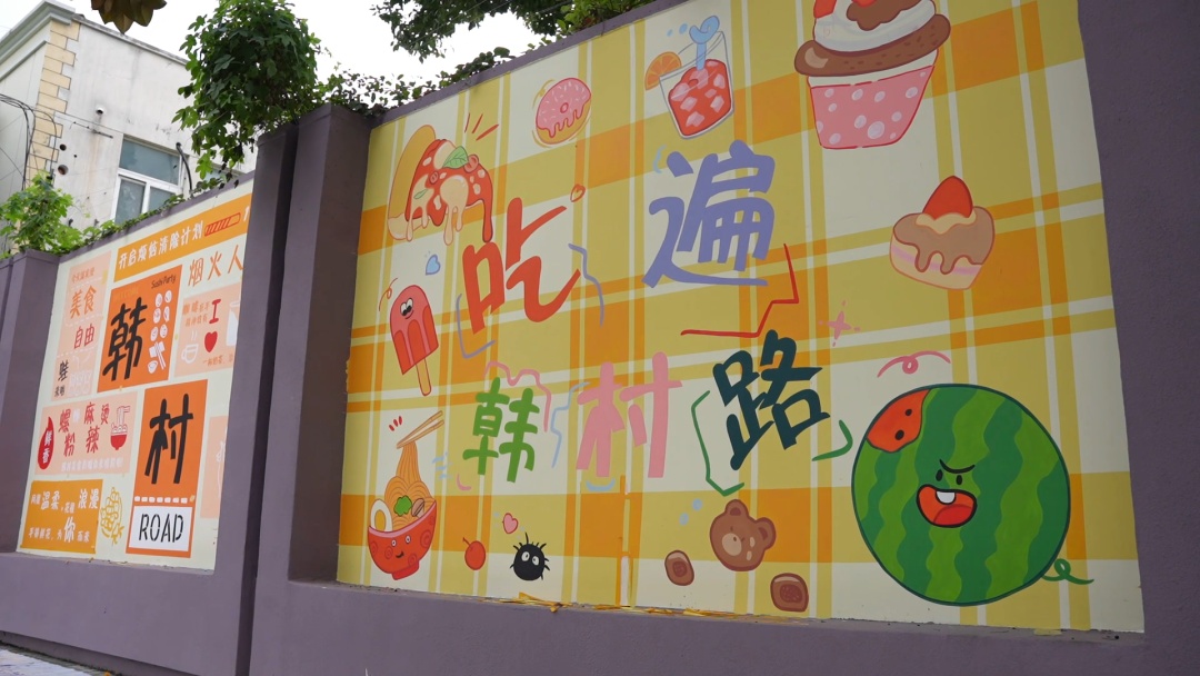 麻辣烫、螺蛳粉、炸鸡铺、咖啡馆、酒吧……在奉贤有一条家喻户晓的小吃街,就是位于奉浦街道的韩村路。这条小吃街在奉贤有着久远的历史,人们认可街上的美食,却也常常感叹街道的老旧单一。然而,近日,曾经略显陈旧的街区,在艺术的润泽下焕发出全新的生机与活力,吸引了不少市民驻足打卡。 韩村路与主干道环城东路十字相交,相较于之前的普通和单一,如今的韩村路可谓是转角遇到“惊喜”,在沿街的墙面上,一幅幅由附近商户、学校、辖区内特殊儿童共同打造的墙面彩绘吸引着来往行人的目光。“咖啡在手,精神我有”“风很温柔,花很浪漫”……漫步在街头,市民游客时不时会被墙壁上的一些色彩、图案惊艳到,或是韩村路美食的合集,或是可爱小动物,或是抽象个性的潮流字符……来往的市民纷纷拿出了手机,比个“耶”和墙绘一起合个影。这些墙绘千奇百怪、五彩斑斓,像是多面的城市皮肤,又像是生动的城市表情,让人忍不住停留、靠近、分享。 “最早的时候,我是画上去,今天来给墙面上色。”附近不少商户也加入了墙面彩绘,大家致力于把自己所在的街道装扮得更加好看,“我感觉很鲜艳,然后肯定会有很多人来打卡,对我们这边的商户也会有一个经济性的带动,人流会越来越多。”商户们表示,墙绘完成后,每天来开门看到这些五颜六色的墙都会让一天的心情变好。 采访时,几位画师正在对墙画做最后的收尾工作,涂色要防止涂出边界线,勾线要保持直线,画师们有街区的商户,有上海商学院的学生,也有附近的居民。墙画的内容来自于国庆期间向上海商学院师生征集而来的墙绘设计,还有辖区内特殊儿童的绘画作品,再由涂料企业立邦的公益项目“为爱上色”全程推进。墙上的绚丽多彩呈现着创作者最浪漫的灵魂,也成为城市街巷的“点睛之笔”。“我设计了一个兔子的IP。”何依凡是上海商学院的学生,几乎每天上学都会走过这条路,韩村路对于每个商学院的学生而言都是快乐的,所以大家也想把自己最美好的祝福定格在墙面上,而富有寓意的小兔子就在何依凡的笔下诞生了,“兔同‘途’,有‘前途似锦’的寓意,然后兔子的繁殖力旺盛,所以也希望这条路人丁兴旺,还有它吃的那个白菜和胡萝卜也有‘财’和有彩头的意思,希望我们这条路上的人民财福旺盛。” 除了商学院学生们的美好祝福,辖区内特殊儿童也积极参与进来,送上了一幅《春》,奉浦街道营商办工作人员卢晨婧指着画面中央的人说道:“这是他心目中关于春天的一个表述。我们也是希望,可以把特殊儿童对于我们街区的感受,定格在墙面上。” 人民城市人民建,人民城市为人民。今年是“人民城市”重要理念提出的第5年。近年来,艺术墙绘深入到城市不同角落,重构城市空间秩序与文化氛围,不仅为城市增添了创意景观,也是将人居环境与文化街区的有机融合。根据设计稿,先由附近居民和亲子家庭来勾线、绘画,再由画师来局部修补和上色,艺术创作过程中,街道与居民间的交流日益密切,与市民共建更多“小确幸”,这种积极的双向沟通成为推动城市微更新的重要力量。“能设计一个IP并得到认可,还能亲手画在韩村路上,我觉得格外荣幸。”何依凡说道。 据介绍,本次活动由街区代表、商户亲子代表、还有附近的居民亲子代表,以及商学院的学生包括留学生共同参与,“参与这次活动,主要也是希望丰富街区人文色彩,形成生活烟火气与艺术感并存的人文新地标。”立邦中国TUB事业群上海销售大区主管钟杰华说道。 据了解,本次墙绘活动也是作为之前韩村路商业营造活动的延续,作为一条以小吃著名的街区,因此,墙绘的一大主题就是街面上的小吃,诸如米线、咖啡、螺蛳粉等消费者喜好的品类,“我们希望可以吸引更多的市民在这边多一分钟的驻足来更好地延伸我们15分钟生活圈的文化内涵。”卢晨婧介绍,“韩村路也是快乐上学路,所以墙面设计也融入了商学院学生对这条路上生活、学习的一些思考。”