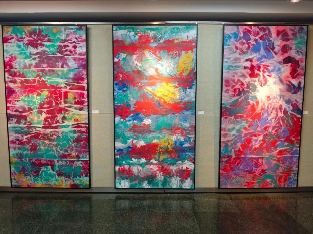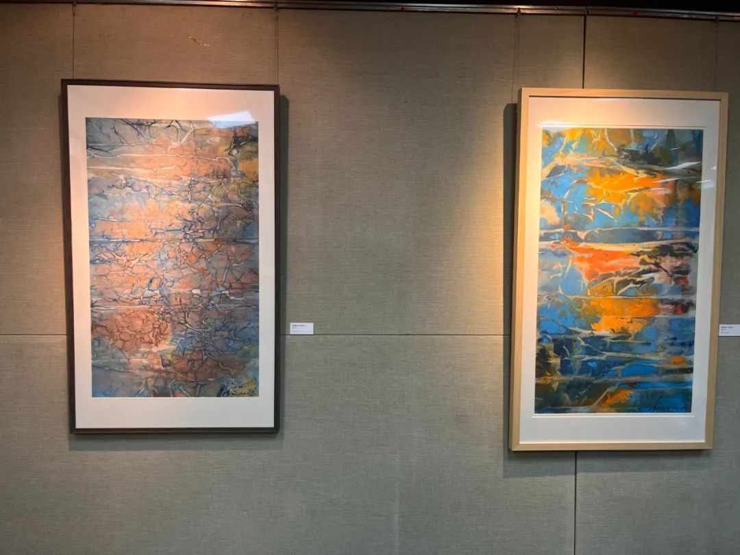 走进展厅,一幅幅色彩斑斓、意境深远的画作映入眼帘。徐刚的作品以其独特的艺术风格和深厚的文学底蕴,将自然之美展现得淋漓尽致。笔触间既有细腻的柔情,又有磅礴的气势,让人仿佛置身于大自然的怀抱之中。展览现场,约60件精选作品整齐排列,既有近年创作的纸本彩墨抽象佳作,也有少量往年水墨和书法作品,还有徐刚部分文学作品,每一件作品都散发着独特的艺术魅力。