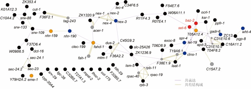 利用上述新的研究范式,研究团队首先探究了在全基因组范围内到底有哪些基因影响突触功能衰退以及行为和认知衰老。利用RNA干扰技术,研究团队筛查了线虫基因组中16000个基因,找到了约59个调控老年动物神经递质功能和行为能力的候选基因。通过构建这些候选基因之间的相互作用网络,发现其中两个表观遗传调控因子(人的同源基因分别为BAZ2B和EHMT1)位于该调控网络的关键节点。